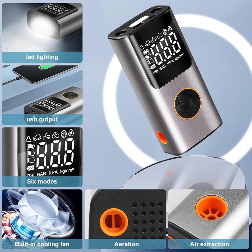 • [شاحن طوارئ ومصباح يدوي] يعمل منفاخ إطارات السيارة كبطارية قابلة لإعادة الشحن، مما يسمح لك بشحن هاتفك الخلوي. يمكن أن يعمل منفاخ الإطارات الرقمي هذا أيضًا كمصباح يدوي في الليل. إنه صغير الحجم وسهل الاستخدام ويمكن تخزينه بسهولة في جيبك أو صندوق السيارة.