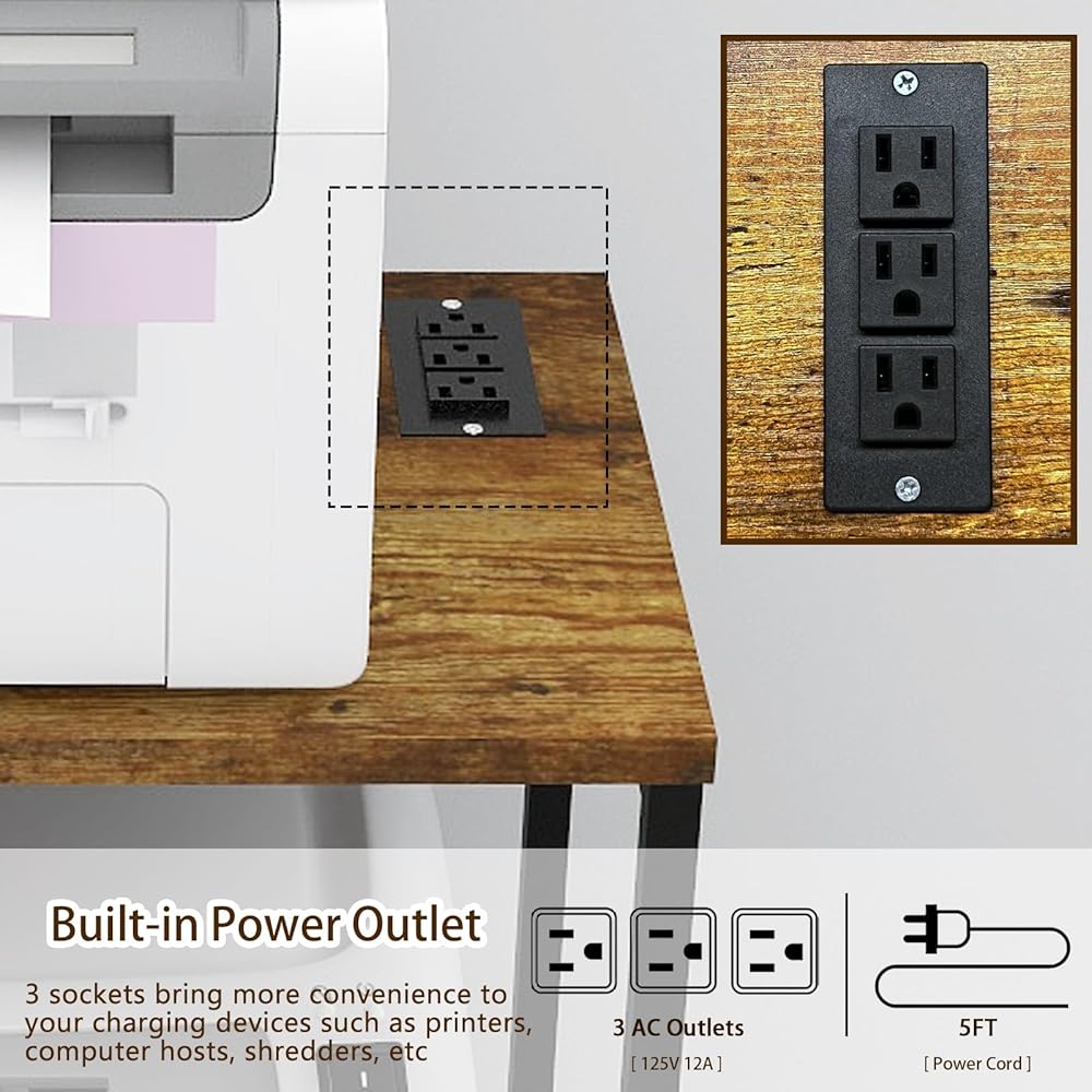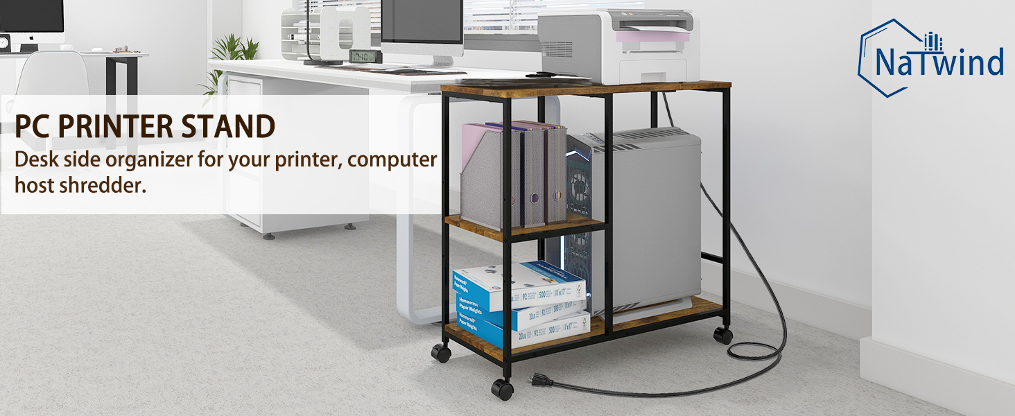 【منافذ طاقة مدمجة】تم تكوين طاولة حامل الطابعة بمحطة شحن على اللوحة العلوية، وهي مريحة لتوصيل منفذ الطاقة دون الانحناء. هناك 3 منافذ تيار متردد، تسمح بالشحن المتزامن للطابعة ومضيف الكمبيوتر أو التقطيع، وهاتفك الخلوي. نحن نوفر سلك طاقة بطول 5 أقدام لاستخدامك المرن للموضع.