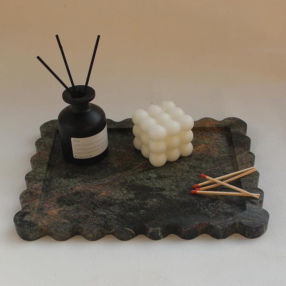 ➤ تصميم أنيق: تتميز صينية العطر بحافة صدفية وملمس من الحجر الجيري الطبيعي، مما يضيف لمسة فريدة وأنيقة إلى مساحتك الخاصة