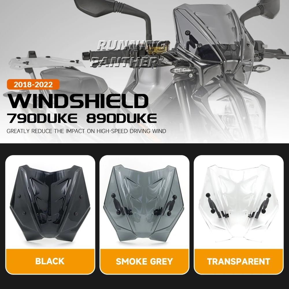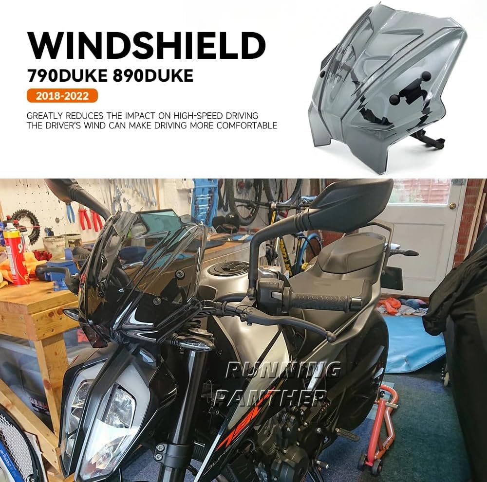 Product Description: Features: Screen are the object of an advanced development. They are made with high-quality materials and propose sizes and specific aerodynamic characteristics, to guarantee you a maximum of comfort, as well in urban daily use as in road use. Description: - Type:Windshield - Condition:100% Brand New - Material:High Quality PC + Metal - Package:Ship according to the picture option content Fitment: - For ktm 790 Duke 2018 - 2022 - For ktm 890 Duke 2018 - 2022 ( Please Ensure This Part Fits For Your Motorcycle Before order ) Features: - The edges are polished for a nice finish. - Its shape is the perfect combination of effective airflow management and styling. - The sweeping design complements the shape of the fairing and interior fascia, and adds the height of a traditional low-profile wind deflector at its vital center - The shape reduces wind noise and improves your ability to hear your motorcycle sound system.