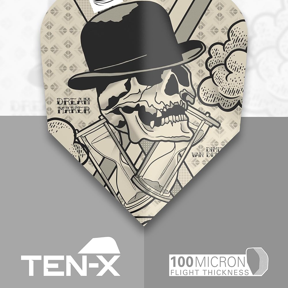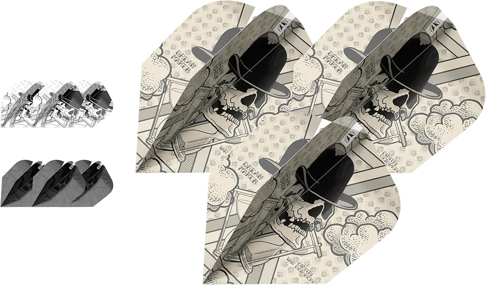Target Darts, in collaboration with the PDC World Champion, Dimitri “Dream Maker” van den Bergh, presents an outstanding set of 3 flight packs, showcasing a unique hand-drawn tattoo design to elevate your game. This multipack includes a total of 9 flights, available in three impactful colourways, ensuring the perfect choice for your game with excellent value. These top-quality flights feature the striking tattoo design on highly durable 100-micron material, offered in No.2, No.6, and Ten-X sizes. They seamlessly match with any shafts available in the market. This pack comprises 9 flights, combining style and performance to enhance your darts experience with the endorsement of a champion player.