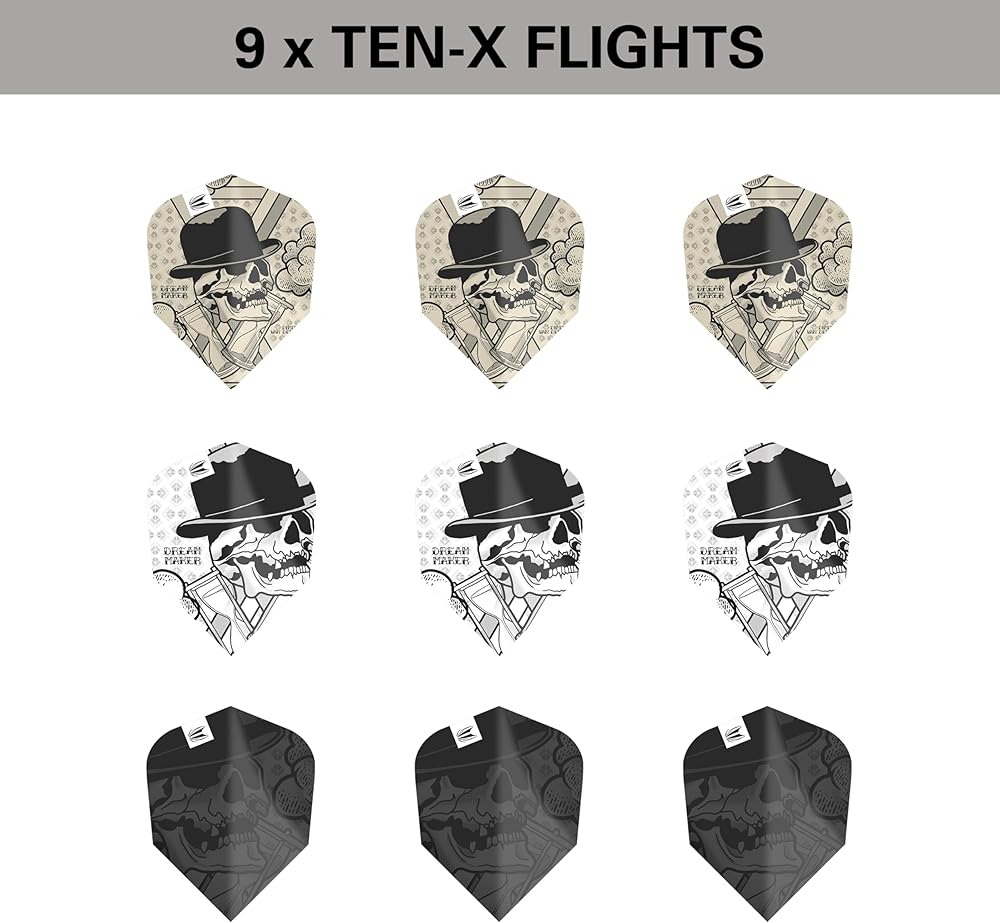 Quality Flights – The striking tattoo design is applied to highly durable 100 micron material and is available in No.2, No.6 and Ten-X sizes.