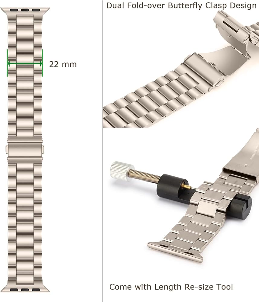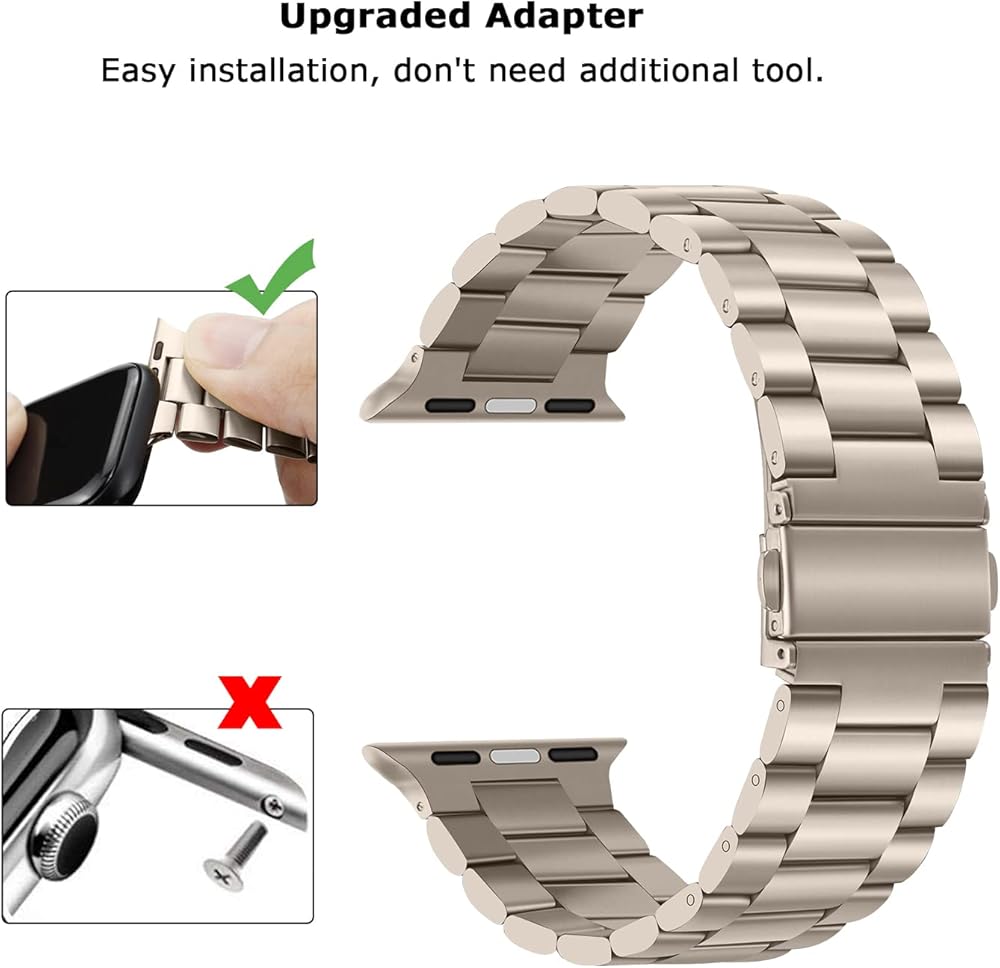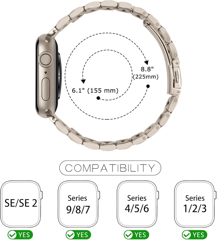 سوار بديل معدني من Tasikar لساعة Apple - حزام ممتاز من الفولاذ المقاوم للصدأ متوافق مع السلسلة 9 8 7 6 5 4 3 2 1 SE (Starlight)