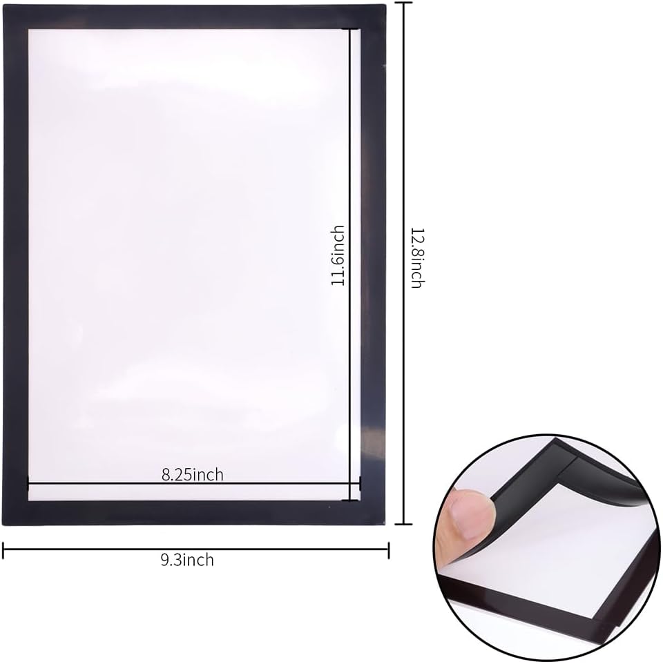 Value Pack - This pack includes 6 packs, our magnetic picture frames with black border A4 Letter size, perfect for displaying your favorite photos, important documents, or eye catching signs. Don't settle for ordinary frames that require tedious installation or damage your wall surfaces. Choose our magnetic picture frames for a hassle free and stylish way to showcase your memories.