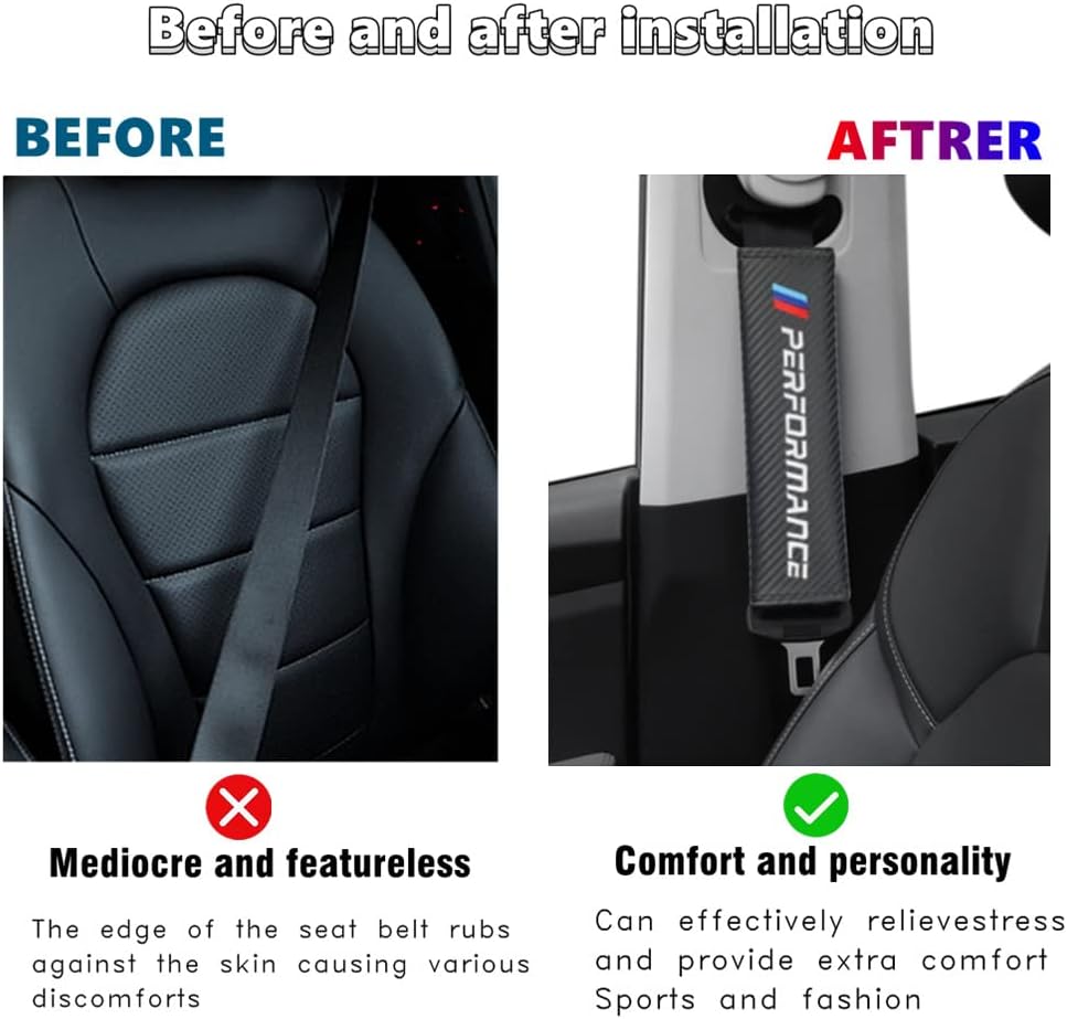 • 【SOFT AND PLEASANT】: High-quality The Carbon Fiber Seat Belt Black Shoulder Pad, provides a considerable amount of comfort, it is not necessary to pull the seat belt off while driving.is the first choice for loyal fans to decorate and improve vehicles.
