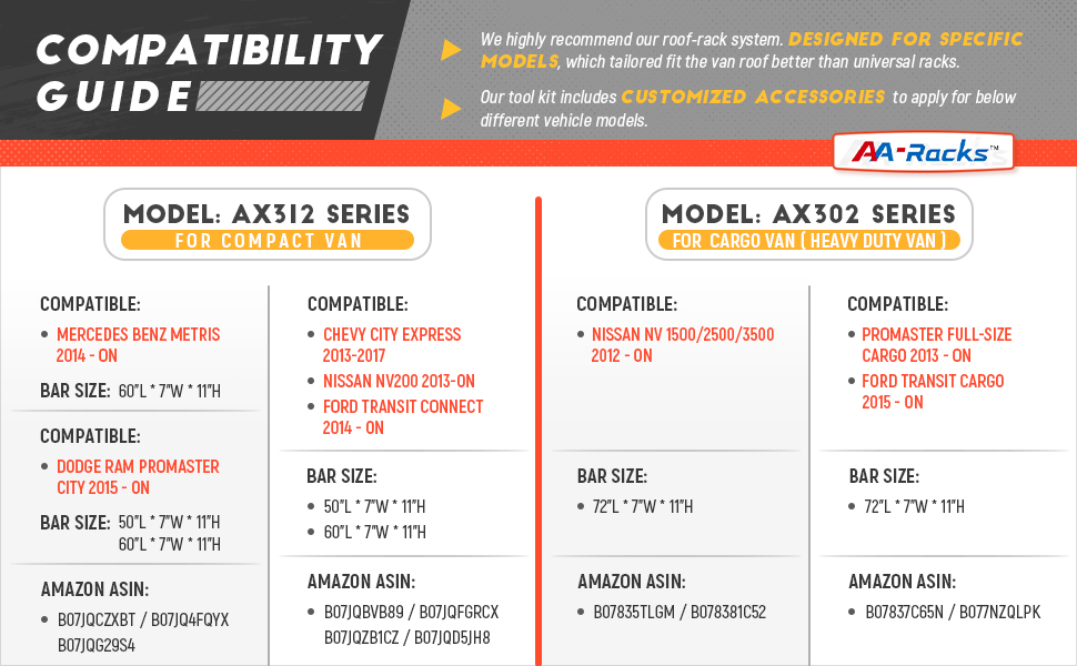 AA-Racks Model AX312-PR RAM ProMaster City 2015-On ألومنيوم 2 بار (50 بوصة) نظام حامل سقف فان مع سدادة سلم أبيض