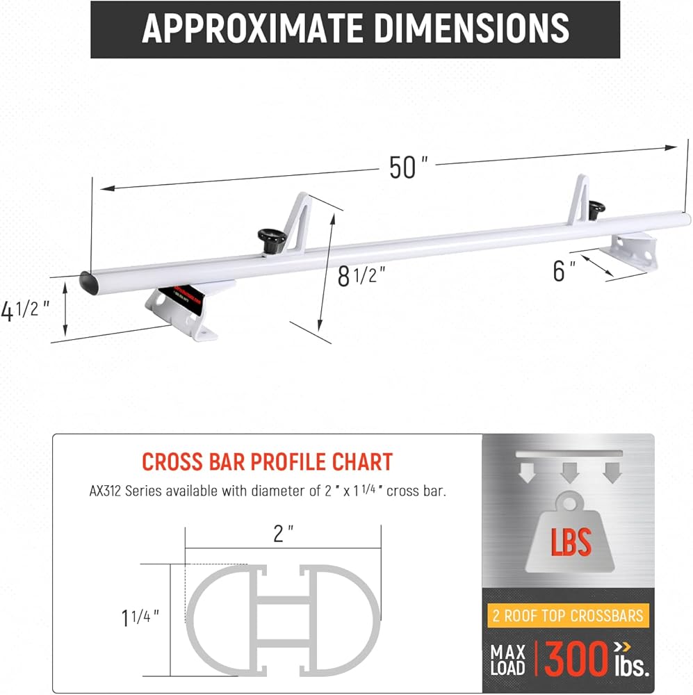 - 2 عارضة، ألومنيوم مقذوف. الحمولة القصوى 300 رطل. طول القضيب المتقاطع: 50 بوصة