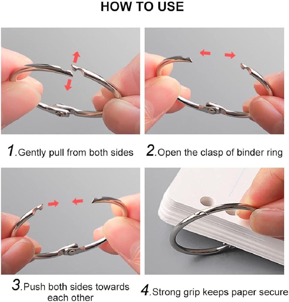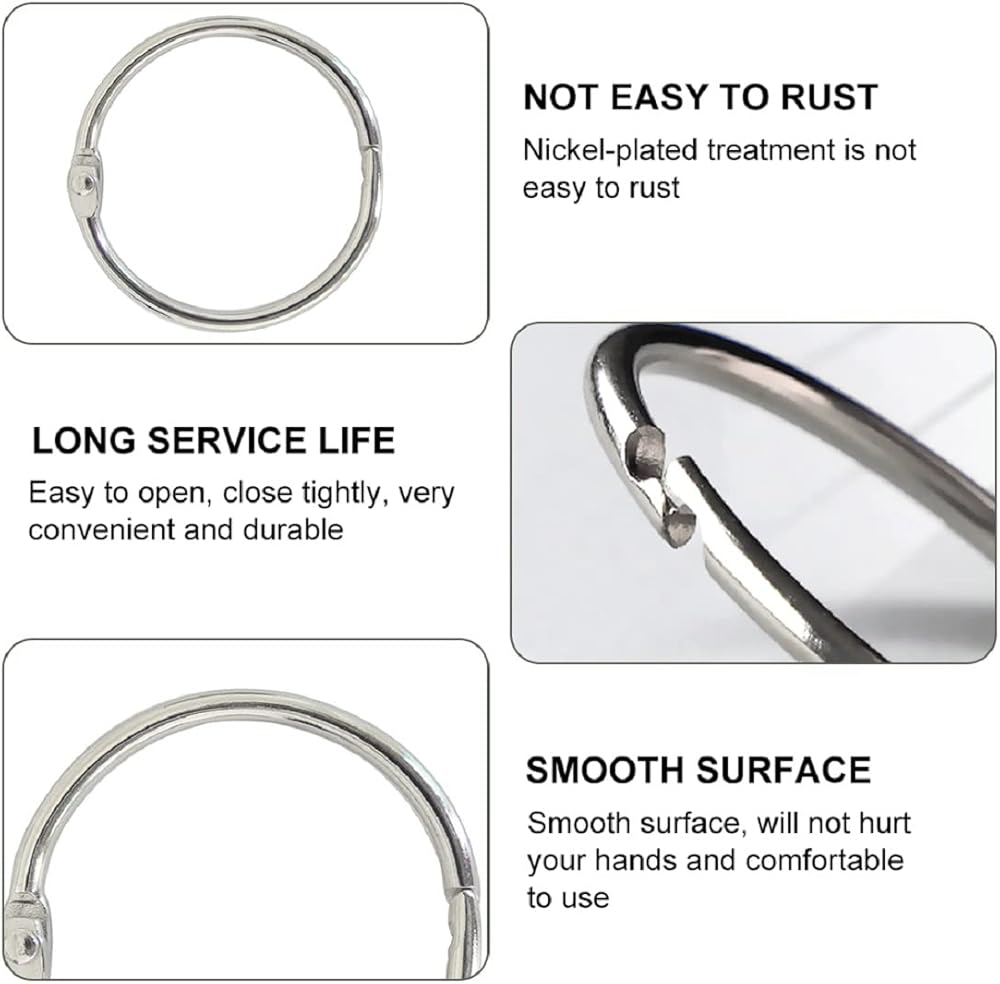 • Multi-function: Use these convenient rings to bind documents, or to link together a multitude of different materials,Great for loose-leaf, memo filing, key rings, scrapbook, binding recipe, photos, book, sample book, scrapbook, contract or file.