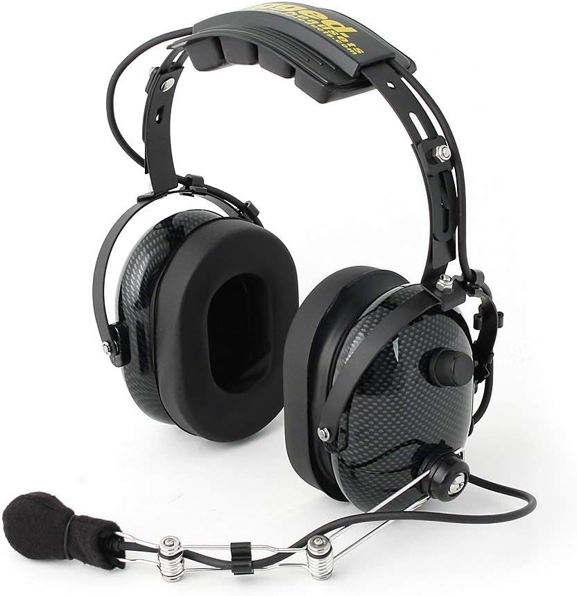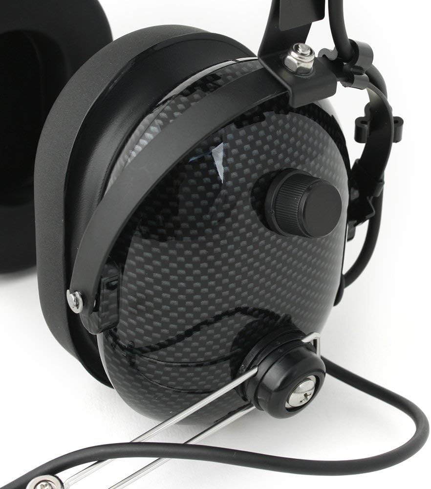 سماعة رأس من ألياف الكربون المتينة فوق الرأس لأجهزة راديو السباق والاتصالات الإلكترونية - تتميز بمقبض التحكم في مستوى الصوت ومقبس إدخال 5 دبابيس مقاس 3.5 مم وميزة الضغط والتحدث