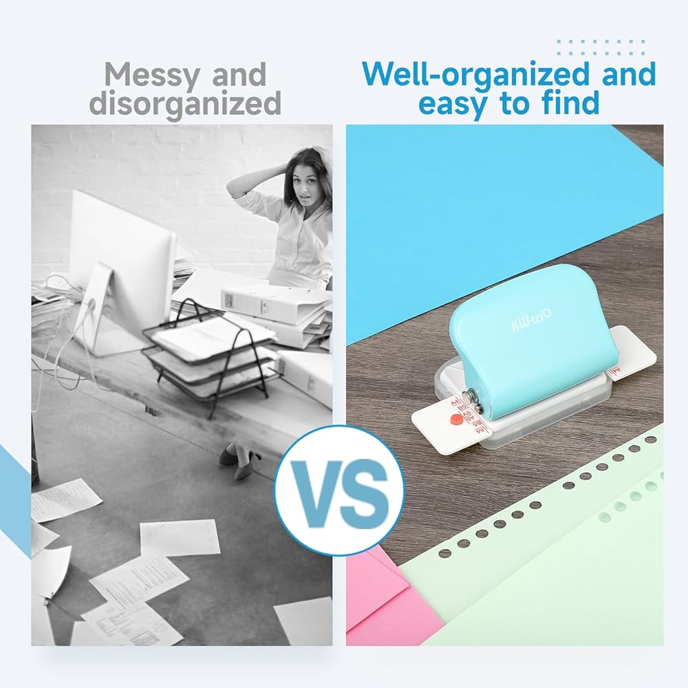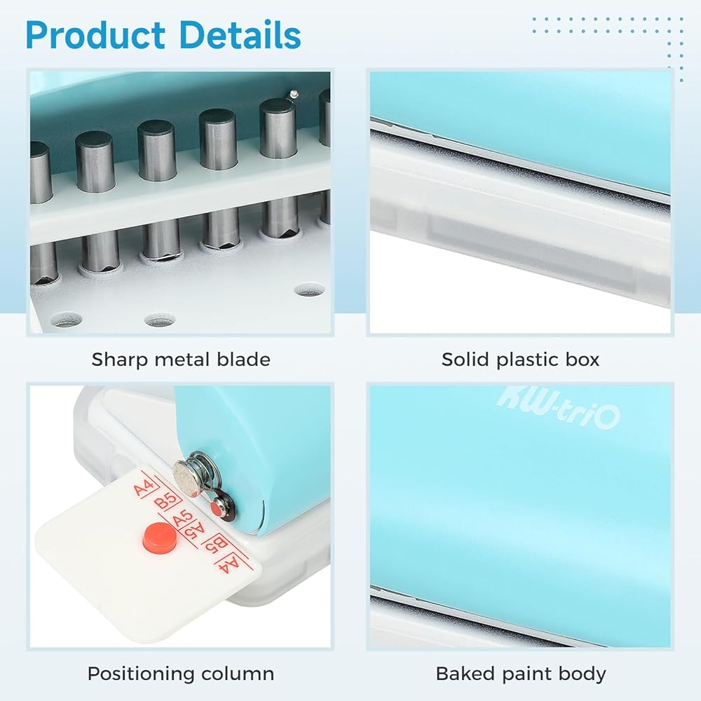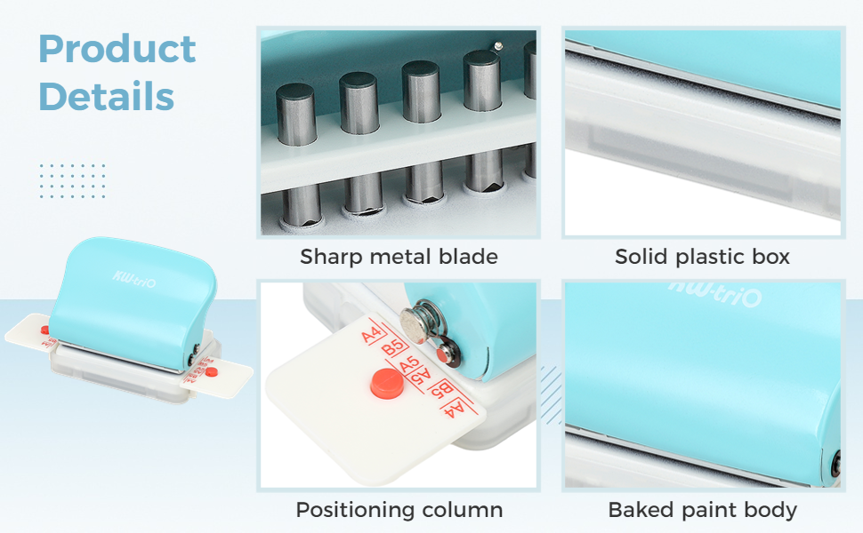 【صندوق بلاستيكي عملي】يحتوي على صندوق بلاستيكي موجود في الجزء السفلي من الجهاز، وهو مساعد رائع في جمع قصاصات الورق التي تم إنشاؤها أثناء عملية ثقب الثقب. لا مزيد من محطات العمل الفوضوية أو قطع الورق المتناثرة وحافظ على مساحة العمل الخاصة بك نظيفة ومنظمة. بالإضافة إلى ذلك، فإن الجزء السفلي من البلاستيك مضاد للانزلاق ويمكن أن يمنع أي حركة غير مرغوب فيها أثناء الاستخدام