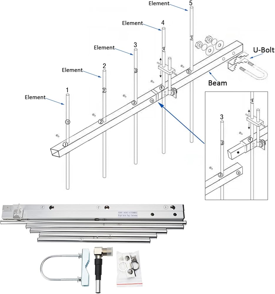 • نطاق التردد: UHF 400-470MHz؛ الربح: 7 ديسيبل (430 ميجا هرتز)؛ الطاقة القصوى: 100 واط؛ المعاوقة: 50 أوم؛ VSWR: أقل من 1.5