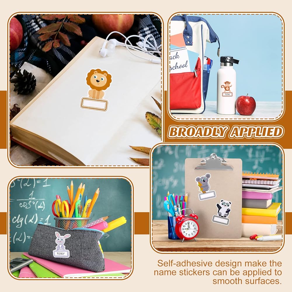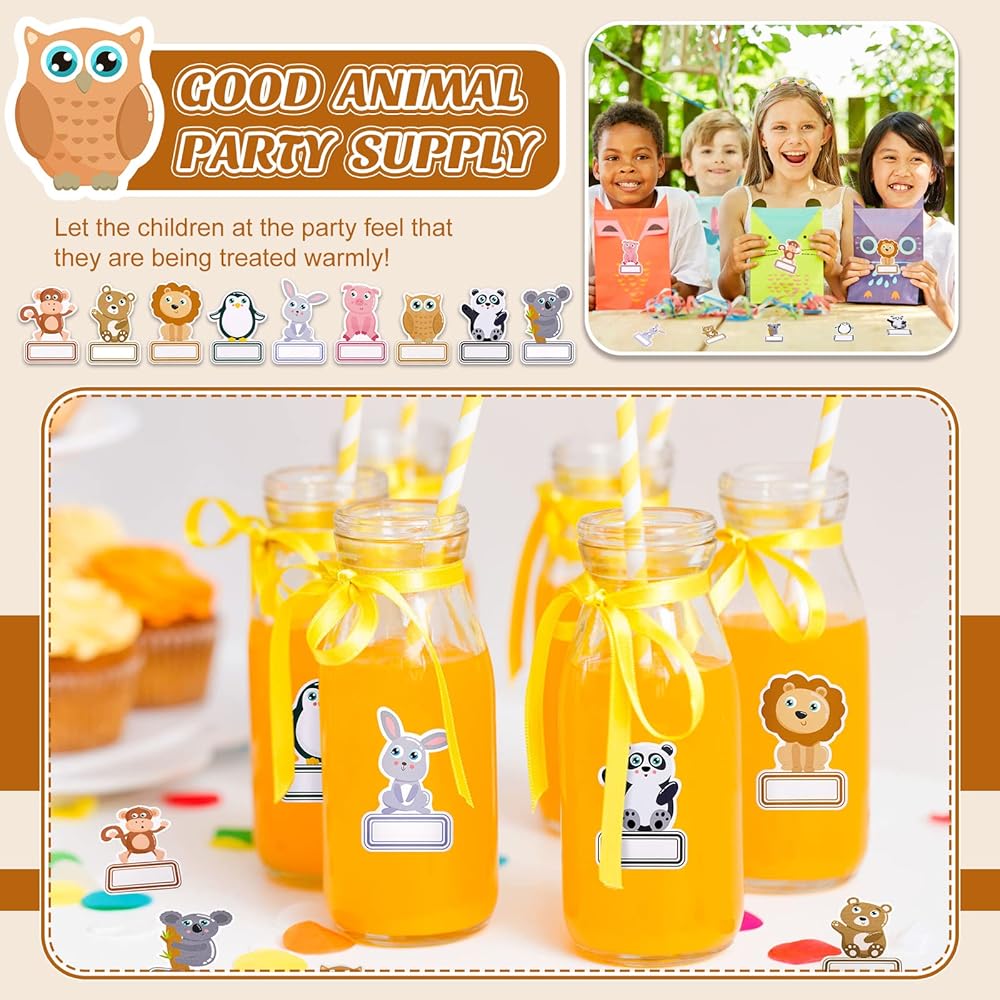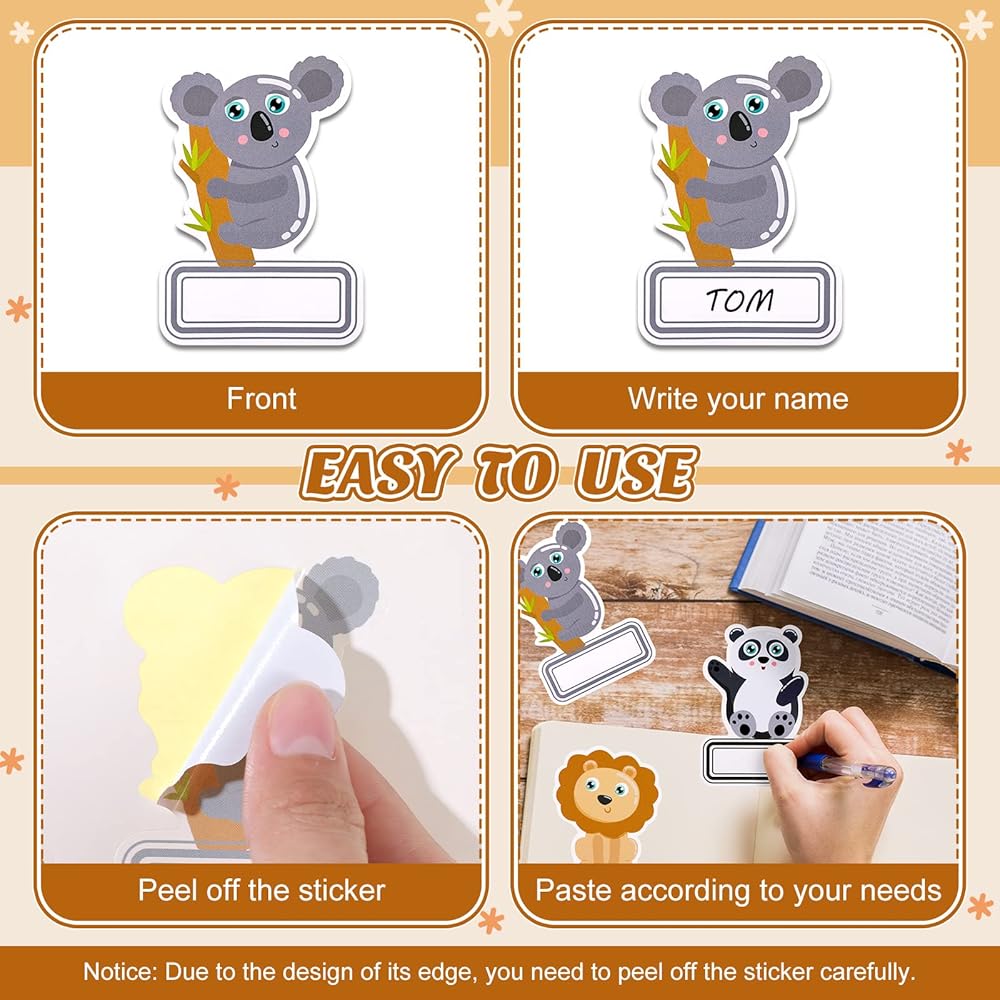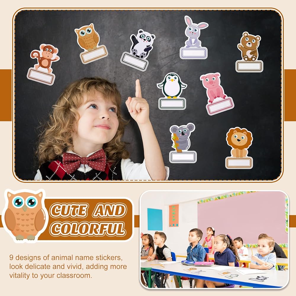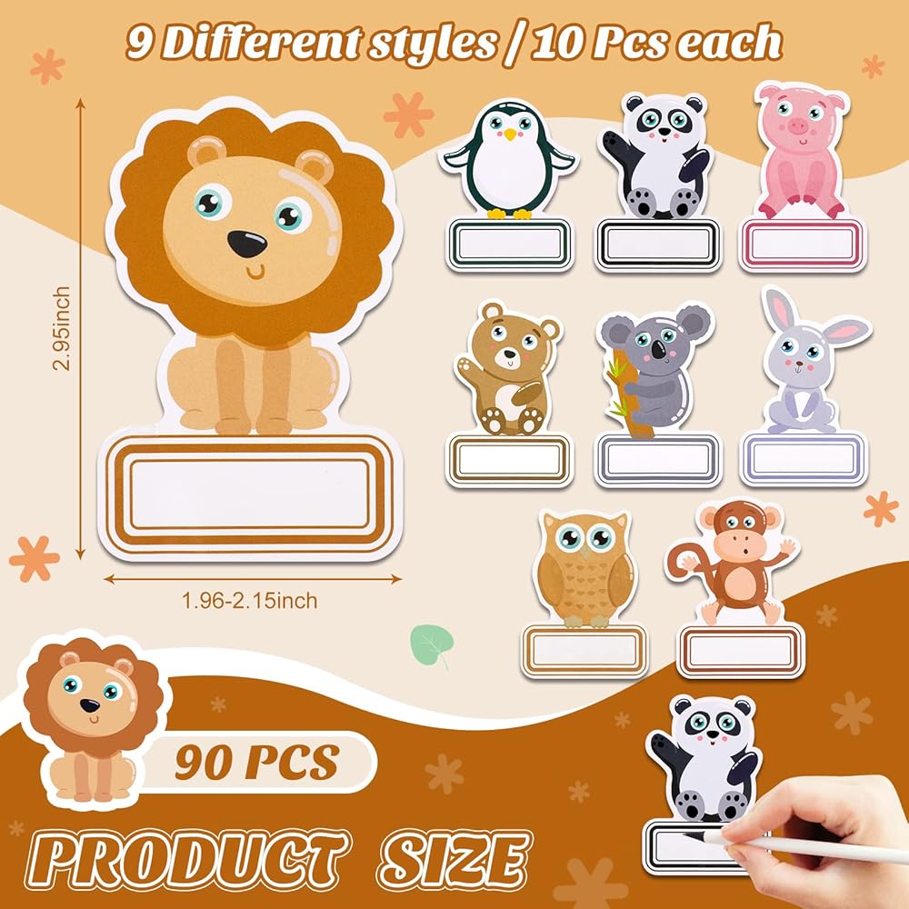 Sabary 90 قطعة من علامات الاسم المقطوعة، ملصقات زجاجات المياه، ملصقات الرعاية النهارية، ملصقات اسم ذاتية اللصق، علامات هدايا للفصل الدراسي، مكتب المنزل، لوحة الإعلانات، ديكور الحفلات، 10 ورقات (حيوان)