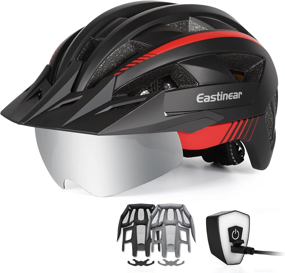خوذة دراجة للبالغين من EASTINEAR مع خوذة دراجة مغناطيسية مع ضوء LED قابل لإعادة الشحن عبر USB للرجال والنساء خوذة ركوب الدراجات مع واقي شمس قابل للإزالة وحجم قابل للتعديل