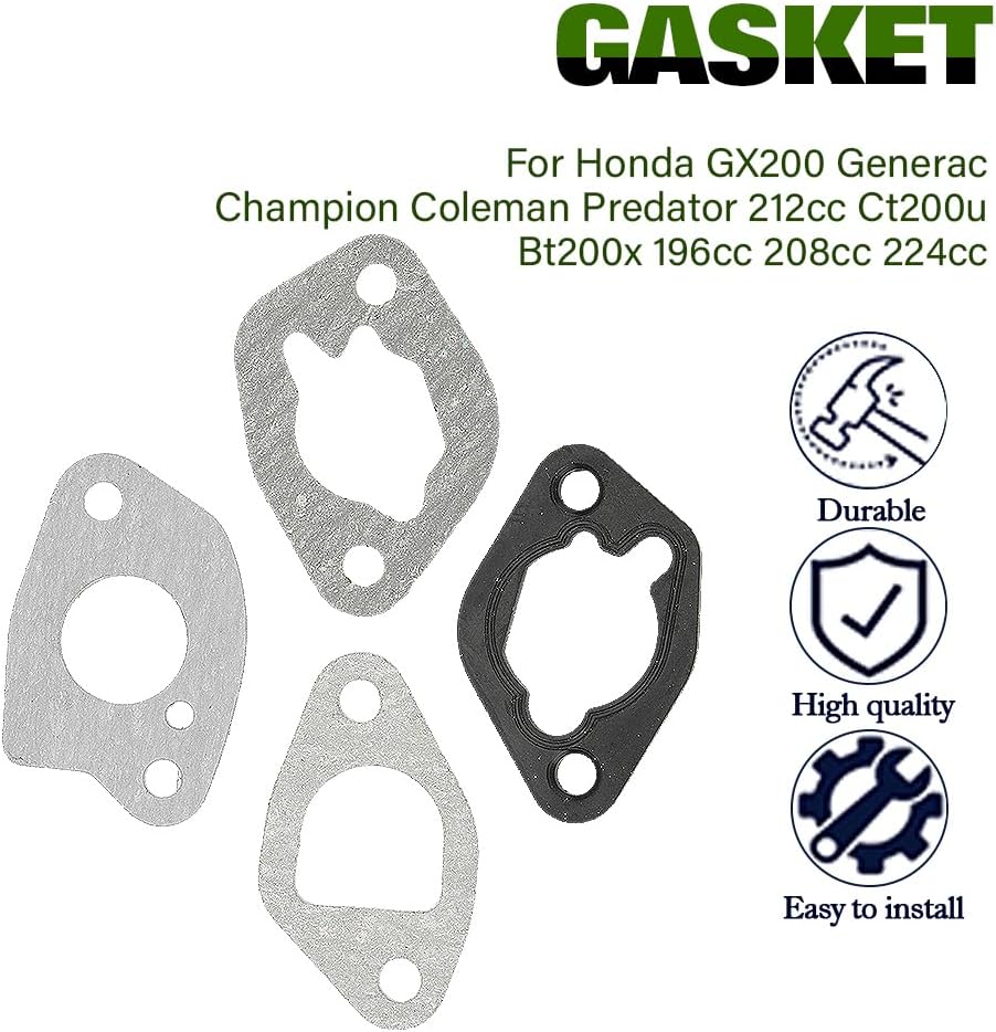 • تم تصميم مجموعة حشوات المكربن ​​للاستبدال وإعادة البناء على المكربنات مثل Honda المتوافقة Gx120، Gx160، Gx200، 168، 170، 5.5hp، 6.5hp، 160cc 200cc 196cc، 208cc، المفترس 212cc، 224cc Baja Mb165 Mb200 Ck196 Kt196 Tillo بطل تسون دوكار ميجا موتو مونستر موتو ليفان جينيراك إكستريم باور دروزتار إلخ.