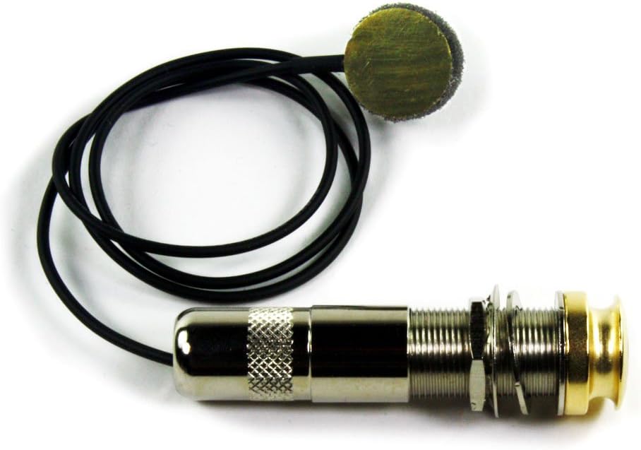The EP-01-JG is a small, light weight piezo sensor that is meant for one time installation on an instrument's soundboard. The pickup comes with 18" of shielded cable and is supplied with a chrome endpin jack and gold strap button. Since this unit is meant primarily for protected interior installations, the piezo element is not 'potted', but is instead covered with an acoustic foam pad. Due to the nature of the piezo and the fact that it is not a 'potted' unit, this pickup has great output and full response. No preamp is required. This pickup is not suggested for stage use. Specifications -- Sensor diameter: 0.59" (19/32", 15mm); Lead wire: approx 18" long; Soldering required.