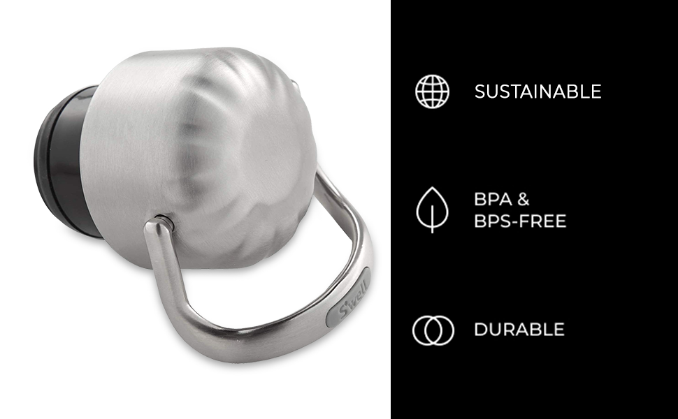 STAINLESS STEEL SWING CAP: Our S'well Stainless Steel Swing Cap is designed with a hinged handle for comfortable, two-fingered carrying. Hand-wash only