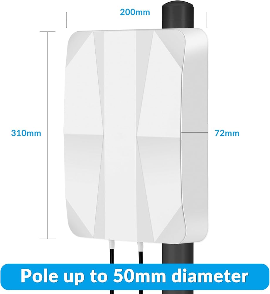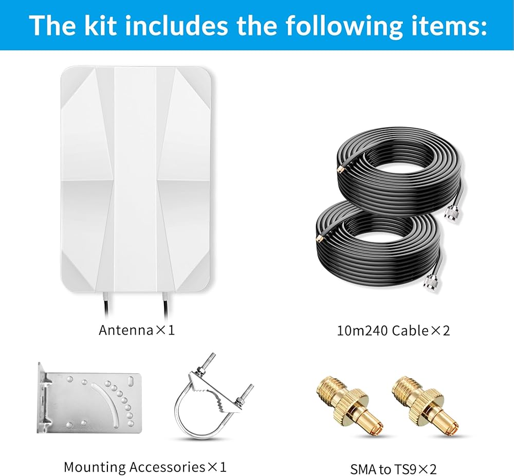 4. Signal transmission is influenced by many factors, including distance, density of high-rise buildings, and openness of the view. The signal may be absorbed, reflected, or interfered with. Please try multiple installation positions to achieve maximum transmission efficiency. It is recommended to install the antenna in a relatively open and high position, such as on the roof, near the window, or outside the window. If the antenna is placed indoors, the signal transmission distance may be reduced.