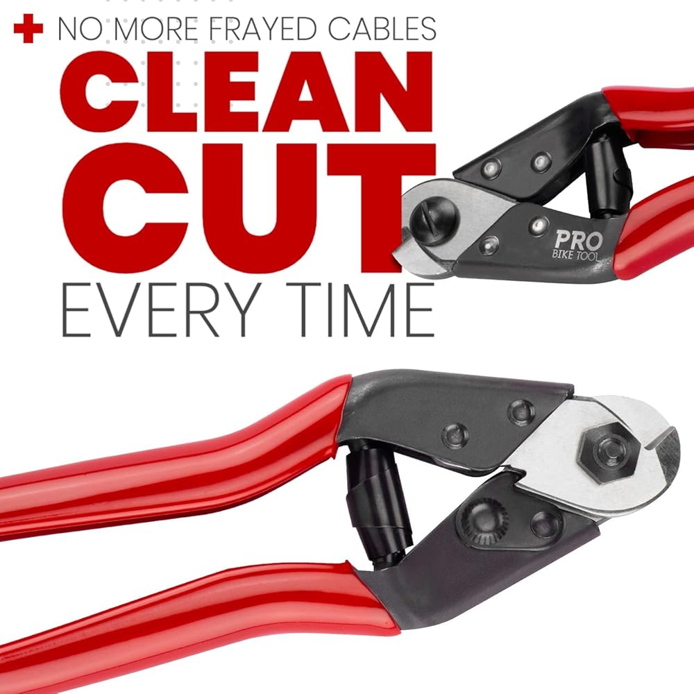 PRO BIKE TOOL Cable Cutters for Heavy Duty cable cutter for bicycle wires and cables. Helps to managed and remove Frayed Cables - Thanks to the hard metal blades, they are not only sharp, but durable. This ensures they provide a clean cut time after time and more importantly, no frayed cables! A Cyclists best friend - Make bicycle maintenance a breeze and cut your cables clean every time. Also great for general use around the house, DIY and all sorts of metal cutting. Ergonomics - The soft PVC coated handle provides plentiful grip for great leverage. The PRO quality Handles ergonomically shaped to your hand for the best grip for high efficiency and safety. Spring loaded! - The pliers can be locked together with the safety lock when not in use, or unlocked meaning the pliers will spring outwards ready for use. Super easy to use! Pro Quality – We are so confident about the quality of our products that if you have any product issues, we're very happy to either provide a Refund or a Replacement.
