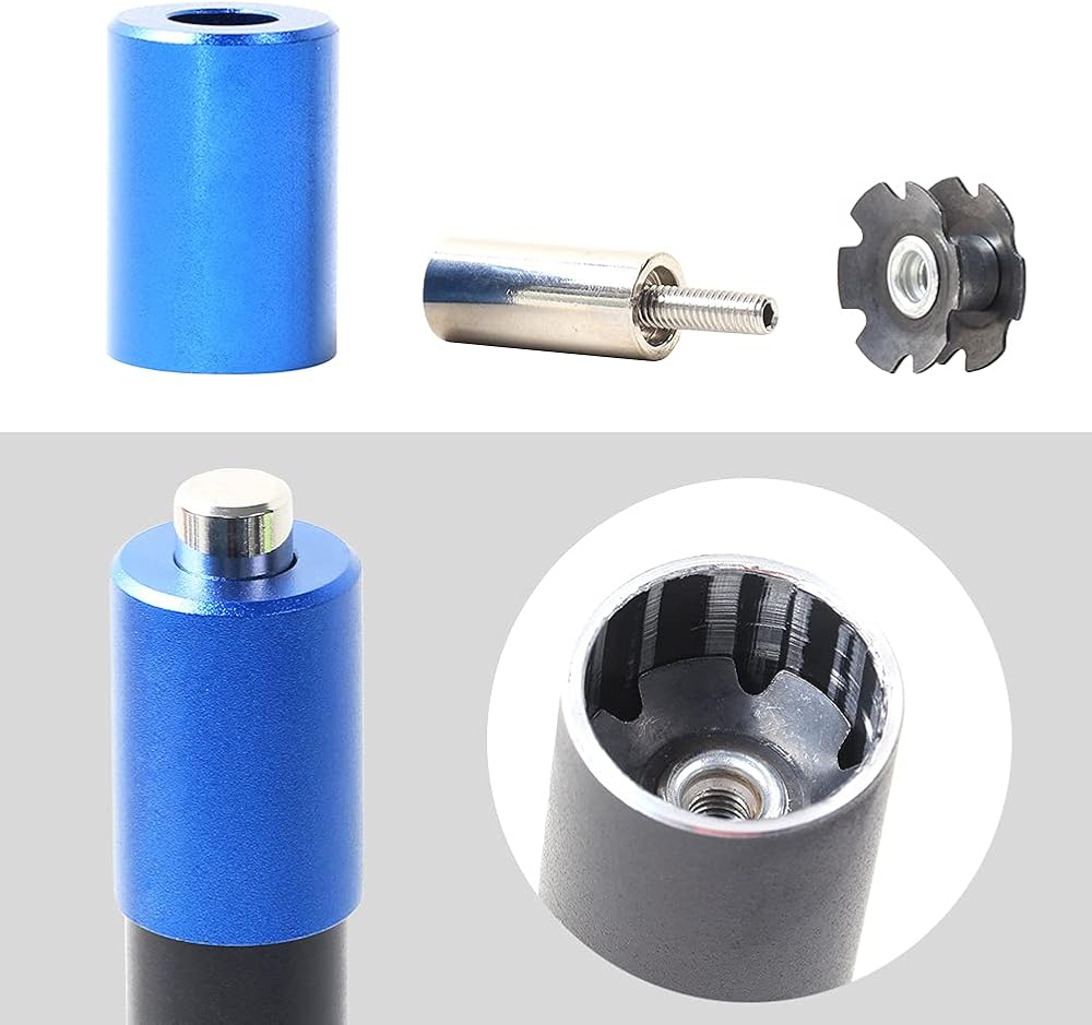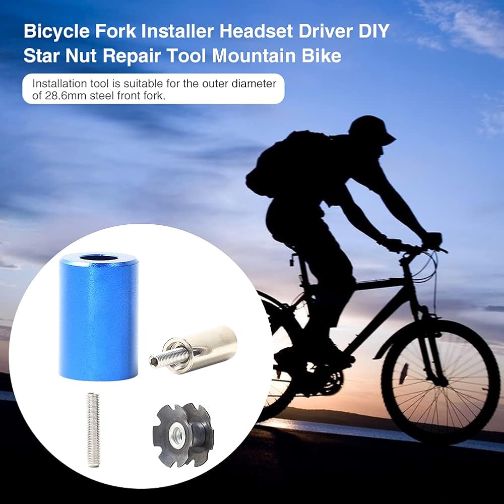 مناسبة: أداة التثبيت مناسبة للقطر الخارجي للشوكة الأمامية الفولاذية 28.6 مم. (شوكة ألياف الكربون غير قابلة للتطبيق!!) مجموعة أدوات إصلاح الدراجة سهلة الاستخدام. قم بتثبيت الجوز النجمي على الأداة واستخدم مطرقة لضربه في الشوكة.