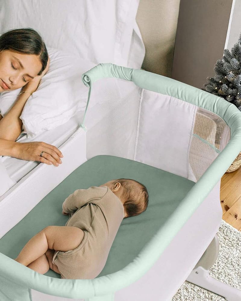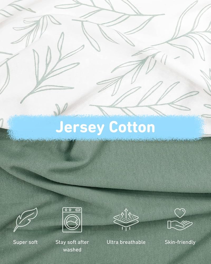 ملاءات سرير الأطفال باللون الأخضر المريمية: إنها كل ما نحبه في اللون الأخضر المريمي (انظر: هابي وصحي وعلاجي). إنها مثالية كهدية لحفلات استقبال المولود للأولاد أو البنات، لتتمنى للطفل نموًا صحيًا وسعيدًا.