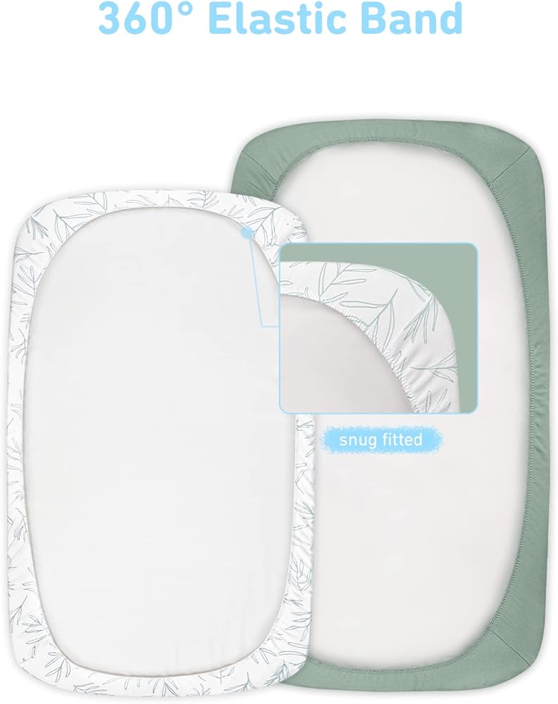 ملاءات سرير الأطفال المثبتة: تتميز بشريط مطاطي، ملاءات سرير الأطفال مرنة تناسب مراتب سرير الأطفال القياسية 28 انش × 52 انش ومراتب سرير الأطفال الصغار، سمك المرتبة يصل إلى 7 انش. شريط مطاطي حول الحافة بأكملها لملاءمة محكمة وآمنة.
