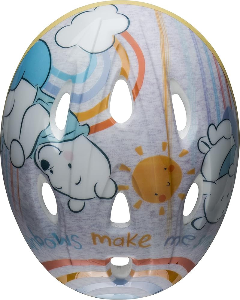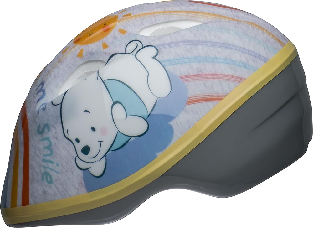 Take your little one on a ride with Winnie the Pooh! They'll look cute while this helmet helps protect their head. True Fit system allows for a proper fit with just a one-step adjustment, and Pinch-Guard™ helps ensure a tear-free fit. Complies with the US CPSC Safety Standard for Bicycle Helmets for Persons Age 1 and Older (Extended Head Coverage)