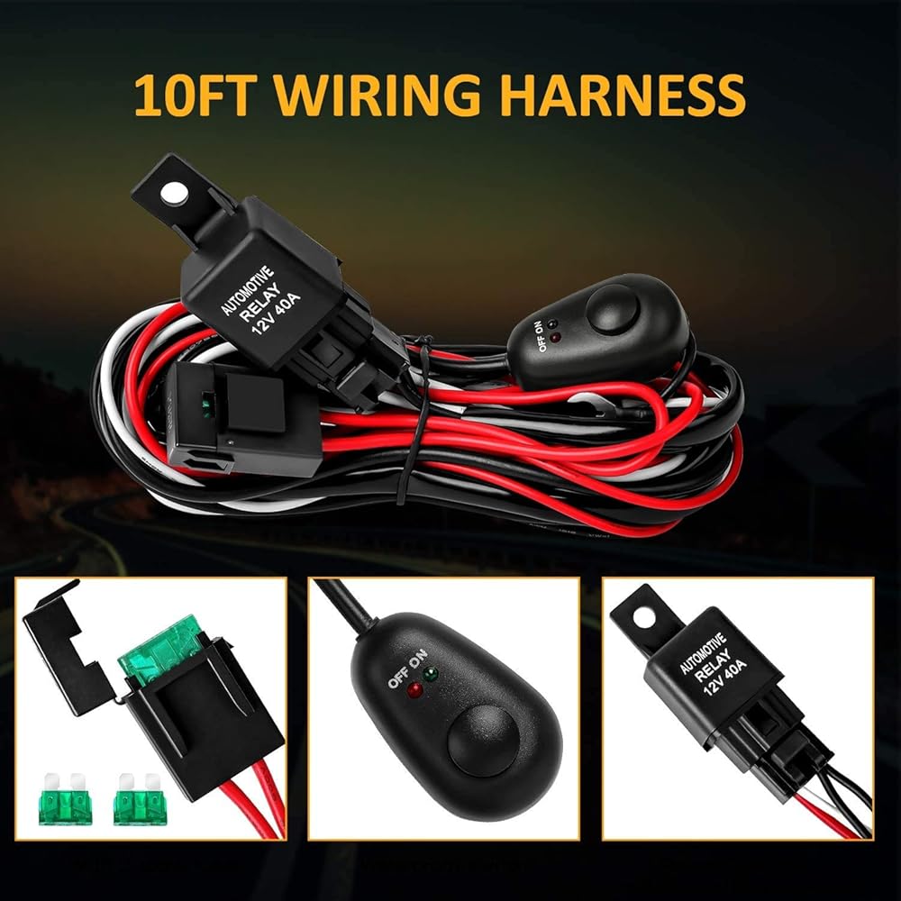 • سرج أسلاك مجاني بطول 10 أقدام - 2 سلسلة: سرج أسلاك شريط الضوء LED الدائري مع مرحل وصمام مصبوب بالحقن بتيار عالٍ، والذي يتميز بتوصيل جيد، وحزام أسلاك LED المقاوم لدرجات الحرارة العالية مناسب لجميع المركبات وأي شريط إضاءة بحجم (7 بوصات) 10 بوصة، 12 بوصة، 20 بوصة، 30 بوصة، 40 بوصة، 50 بوصة، 52 بوصة، سعة التحميل تصل إلى 240 وات.