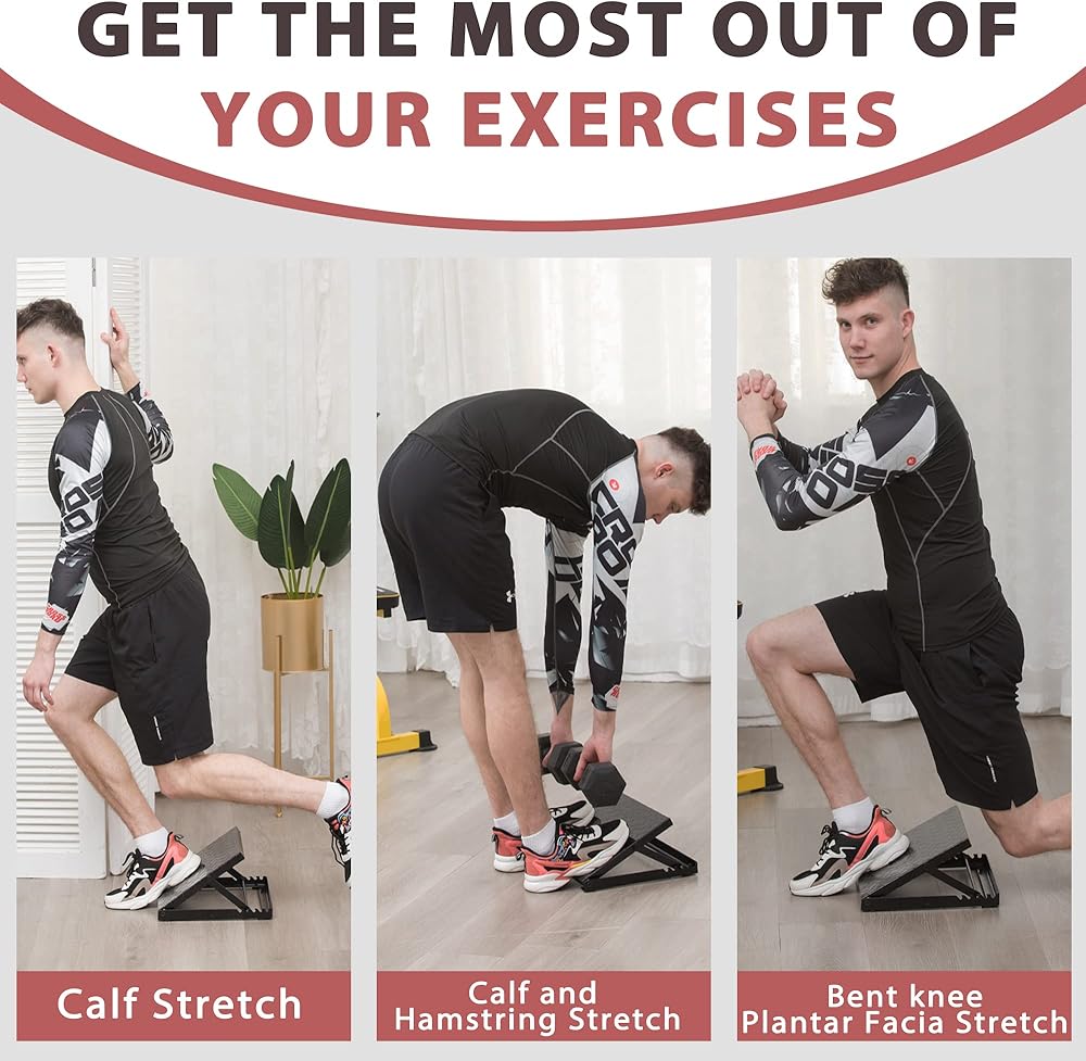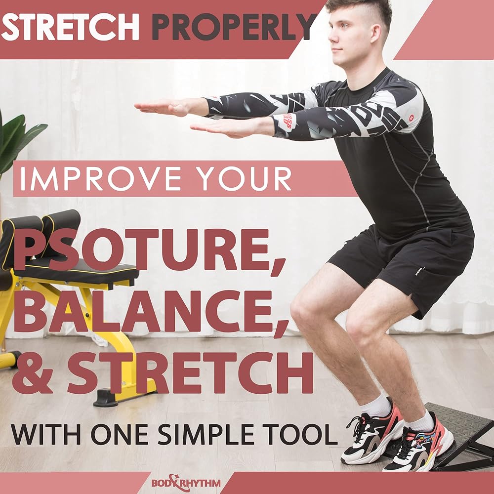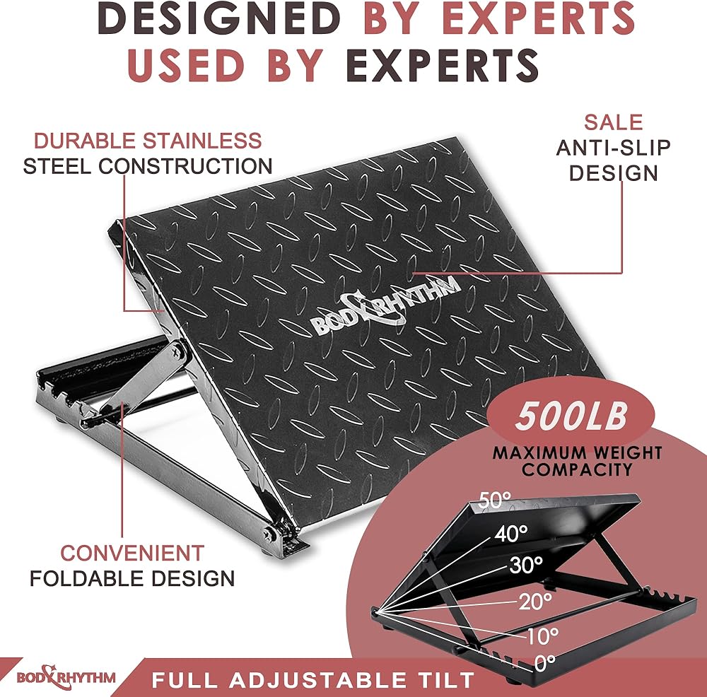 لوح مائل عالي التحمل قابل للتعديل من BODYRHYTHM للتمدد والمرونة والقوة وتدريب الركبتين فوق أصابع القدم مع سطح غير قابل للانزلاق، ممتد للكاحل من أجل صالة الألعاب الرياضية المنزلية.
