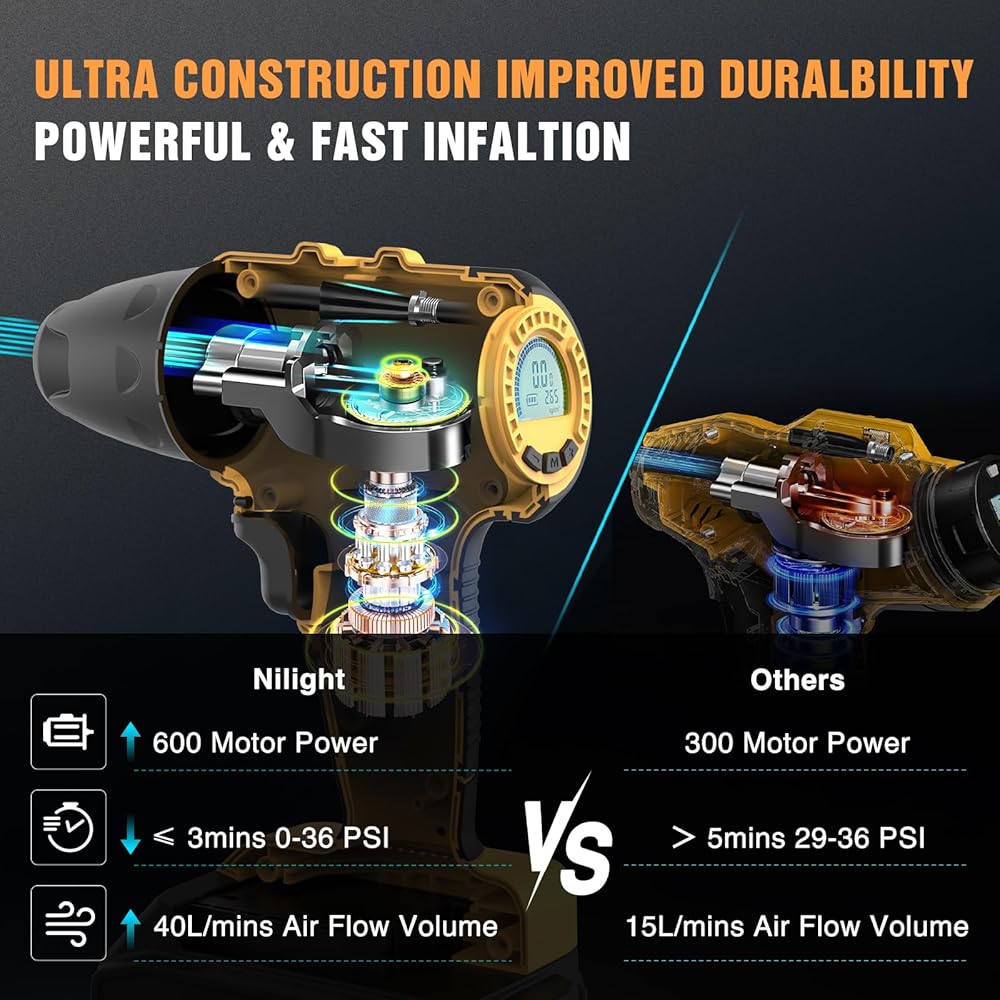 • تتضمن العبوة: مضخة ضاغط هواء محمولة، 3 فوهات ودليل تعليمات. ضمان لمدة عامين من Nilight.
