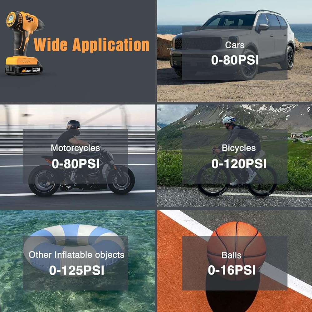 • مجموعة واسعة من التطبيقات: تتضمن 3 فوهات. ينفخ أي صمام شريدر على السيارات وسيارات الدفع الرباعي والمركبات الرباعية والدراجات النارية والدراجات الهوائية. يمكن للملحقات المتوفرة نفخ البالونات والكرات الرياضية والوسائد الهوائية والوسائد والمراتب بسرعة. ملحوظة: هذه المضخة غير مخصصة للاستخدام مع الضغط العالي أو التطبيقات ذات الحجم الكبير مثل الشاحنات وحمامات السباحة والزوارق القابلة للنفخ.