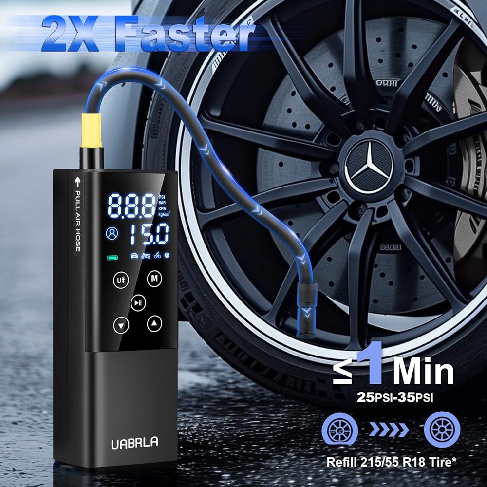 نفخ أسرع 2X: ارجع إلى التصميم التوربيني والمزود بشريحة عالية الأداء، يمكن لضاغط الهواء المحمول هذا لإطارات السيارة أن يوفر ضغطًا يصل إلى 150 رطل لكل بوصة مربعة وإعادة ملء إطار سيارة 175/70R14 من 0 إلى 35 رطل لكل بوصة مربعة في أقل من 5 دقائق. السرعة أسرع بنسبة 30% من غيرها في السوق.
