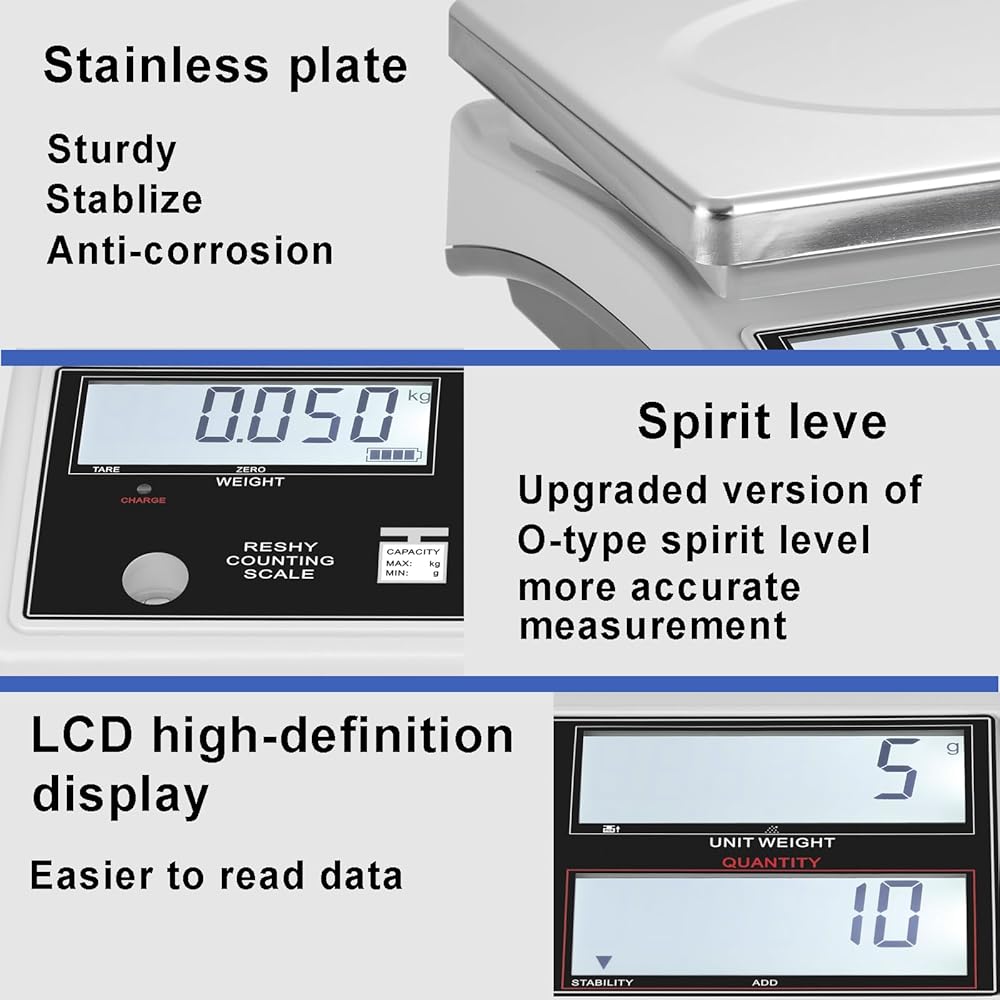 تستخدم موازين العد الصناعية أجهزة استشعار عالية الثبات. اضغط على زر العد لأخذ المنتجات بنفس الجودة وعدها بسهولة، كما أن لوحة الوزن محمية وليس من السهل إسقاطها.