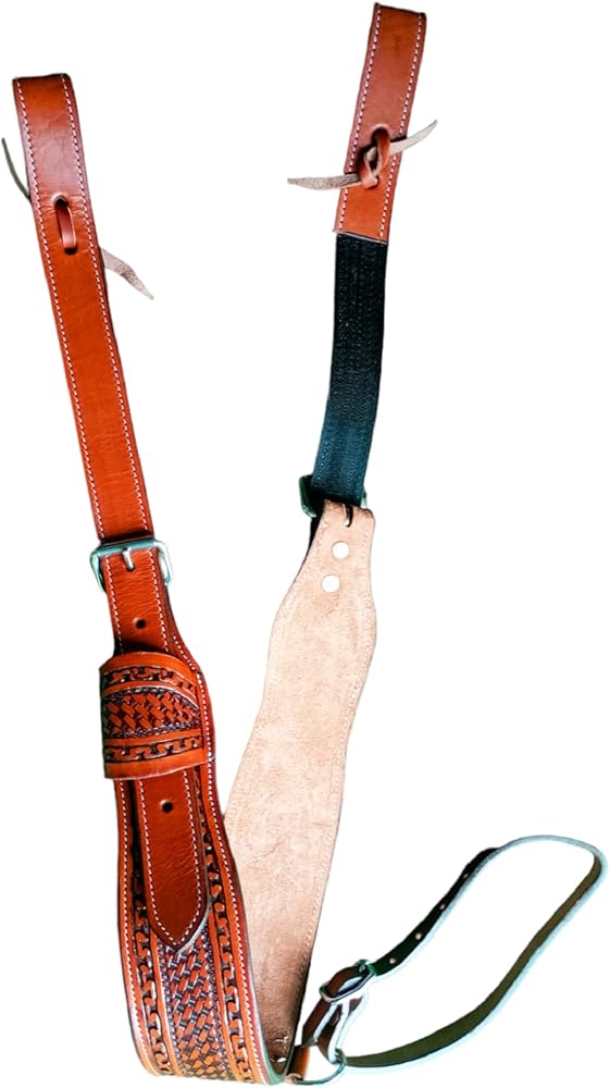 Genuine leather rear flank cinch accented with a hand tooled floral finish. Billets included feature a suede reinforced back to increase its flexibility and durability. Fully Adjustable Hand Tooled All Leather 100% Girth Features: Length : ‎Cinch- 32'' inches Buckle to Buckle, Billet - 24'' inches SS Roller Buckle - 1.5'' inches Heavy Duty.