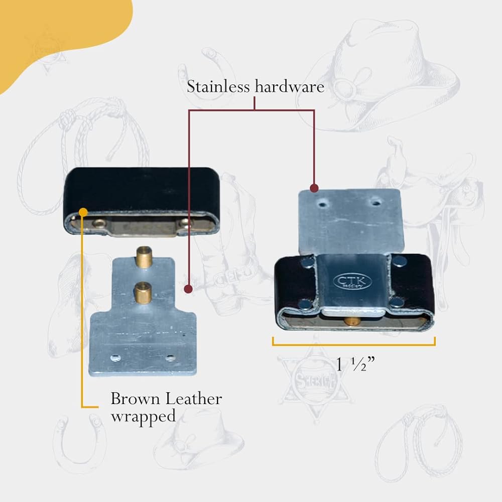 Set of a pair of vertical stainless CTK SADDLERY Blevins buckles for 2 ½” western stirrups straps. This set comes in two versions: Black leather wrapped and Brown leather-wrapped, perfect to match any of your saddles.
