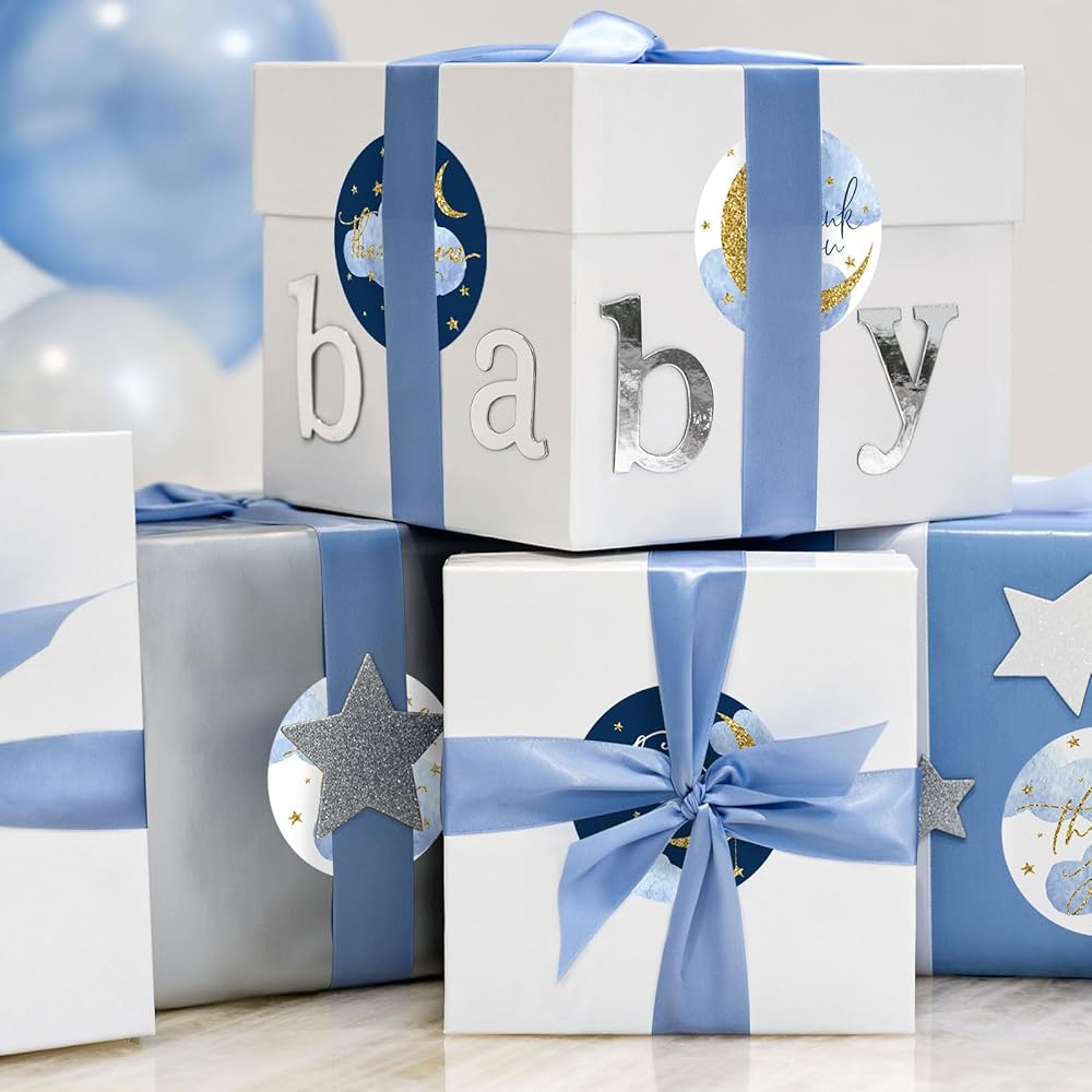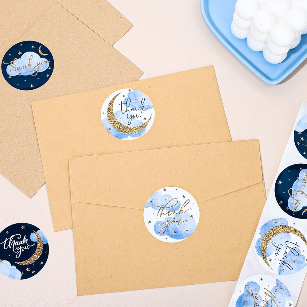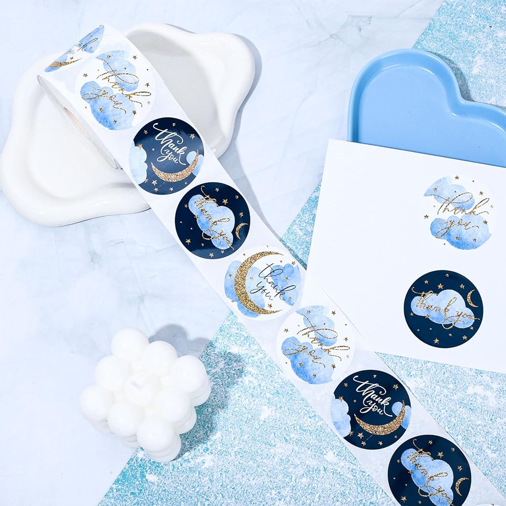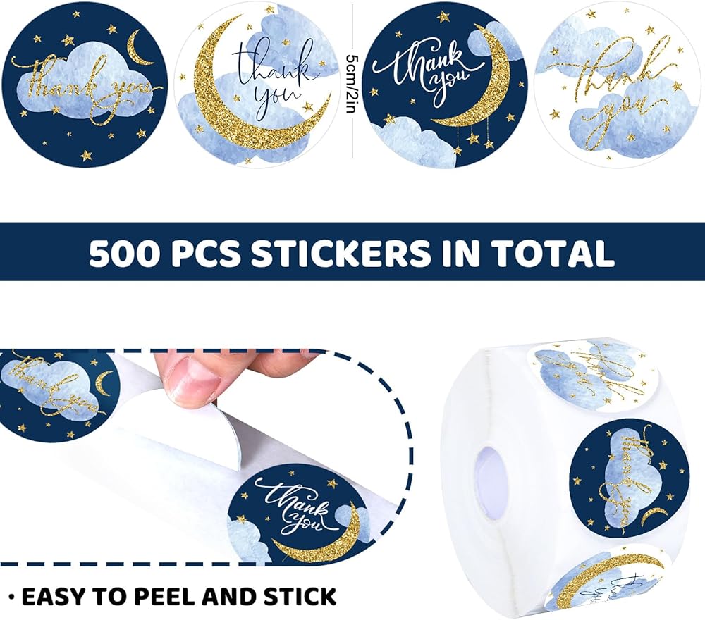 Whaline 500 قطعة من ملصقات شكرًا لك على النجوم، ملصقات رول توينكل توينكل ليتل ستار ذاتية اللصق، نمط سحابة القمر المستدير، ملصقات ملصقات شكرًا لك لتزيين ظرف عيد الميلاد والزفاف، 4 تصميم
