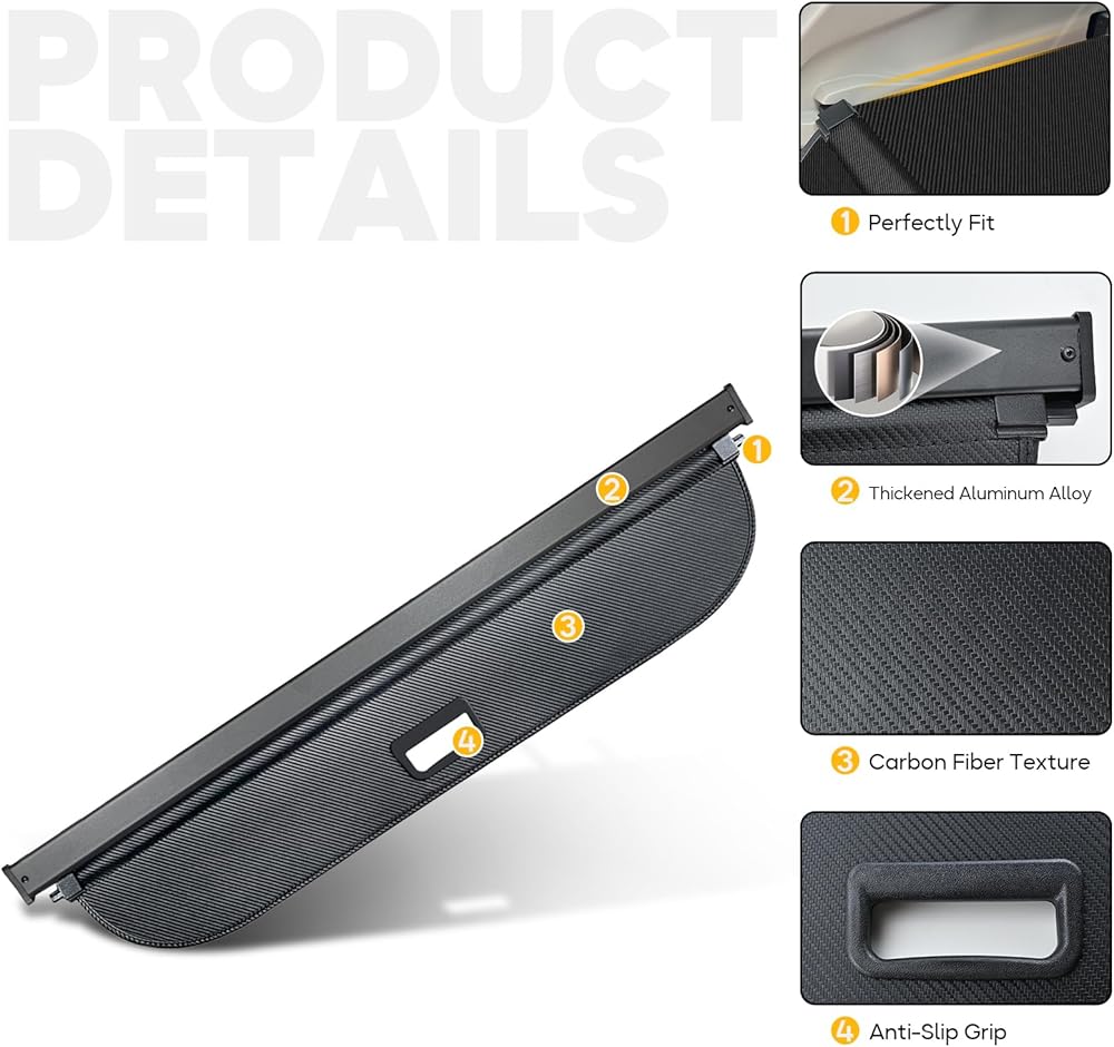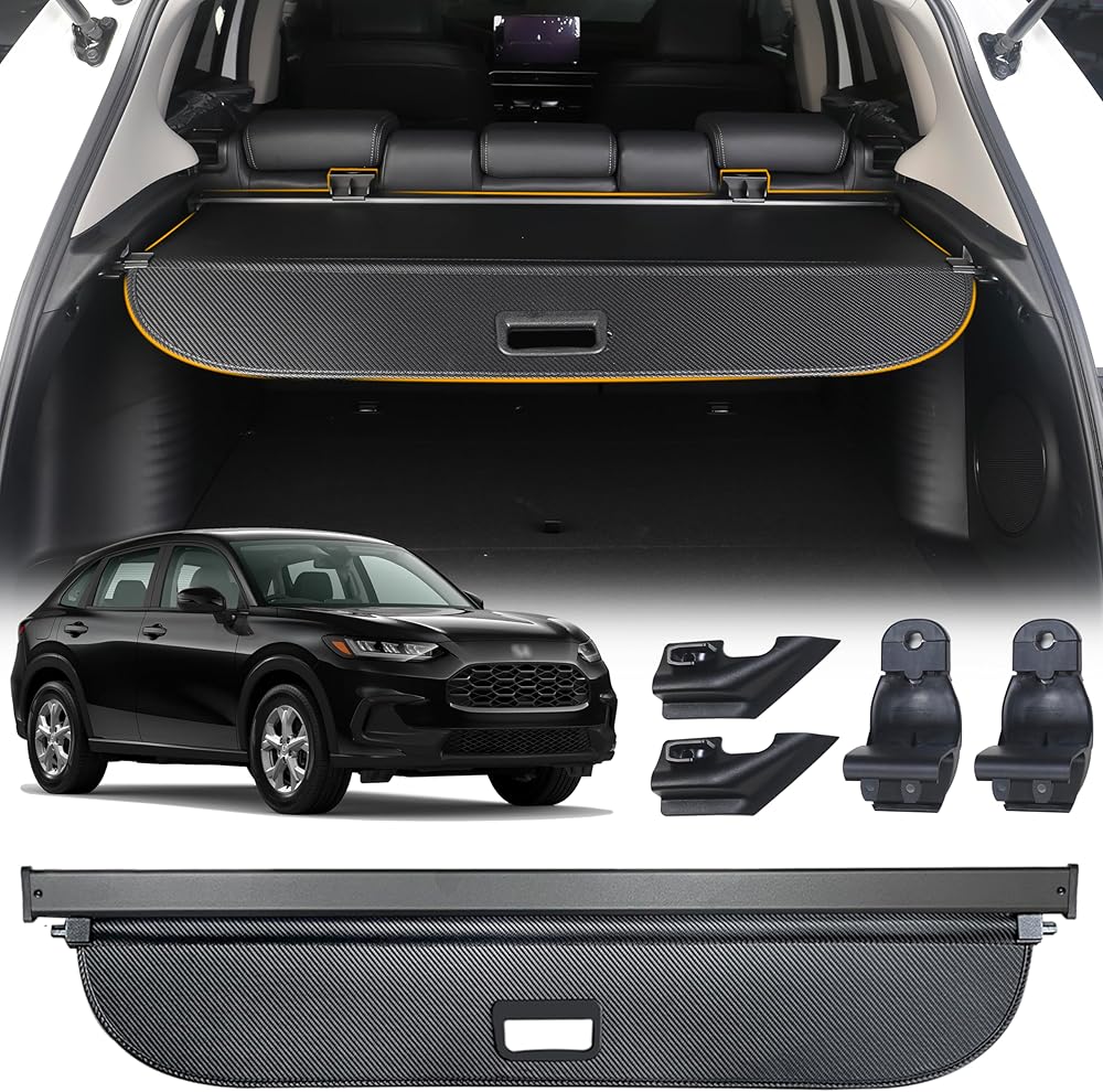 • 🚗[مادة عالية الجودة] غطاء الحمولة المتوافق مع غطاء صندوق السيارة الخلفي Honda HR-V لعام 2024 مصنوع من ألياف الكربون ويوجد فلانيل متصل على كلا الجانبين لحماية صندوق سيارتك من الخدوش أثناء التثبيت وجعله خاليًا من الضوضاء.