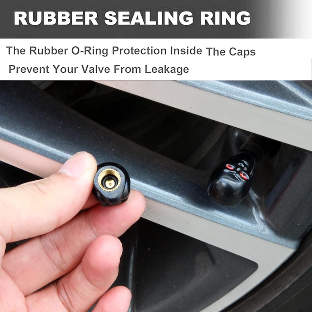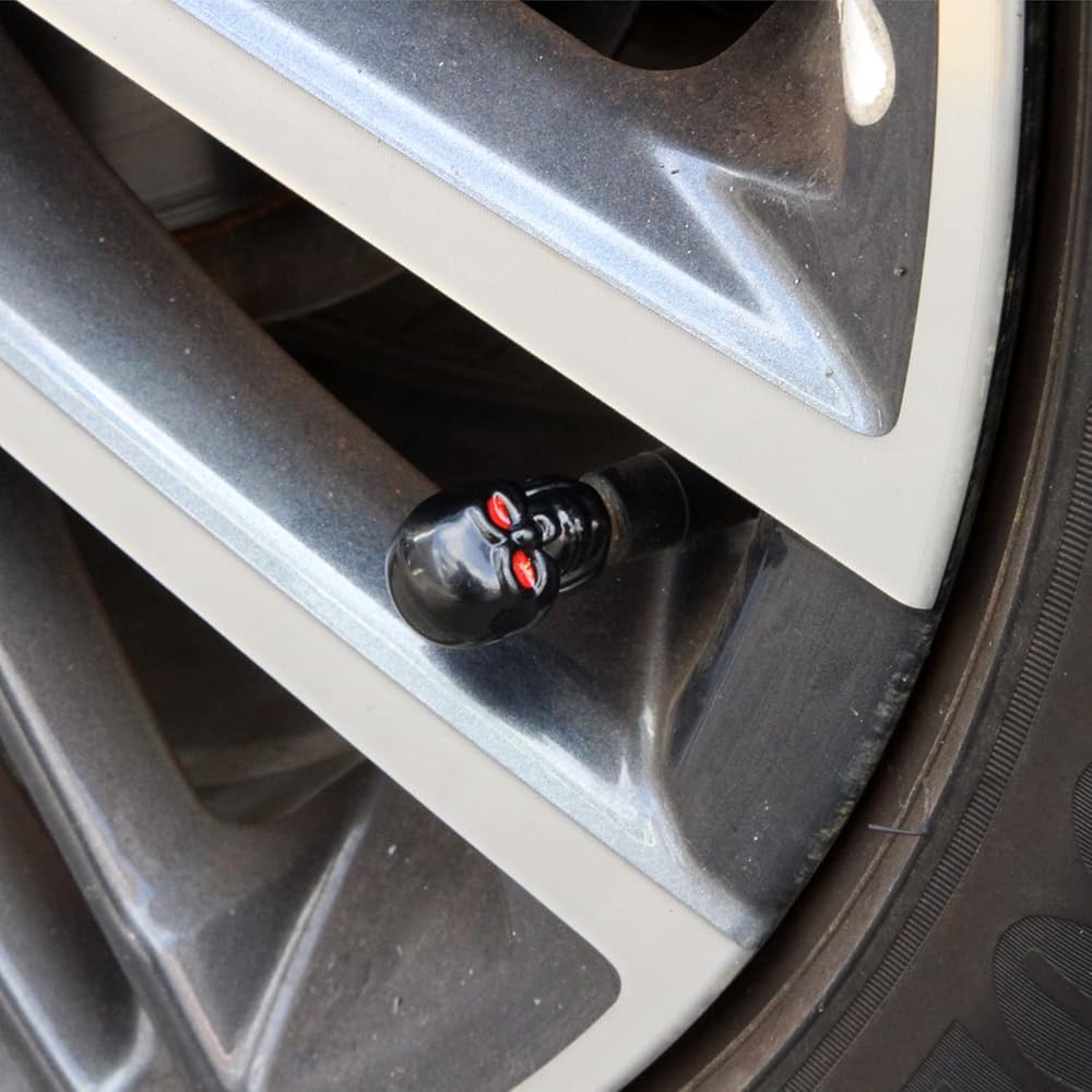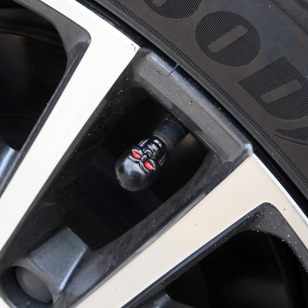إكسسوار إطارات رائع المظهر - أغطية الإطارات هذه على شكل جمجمة مصنوعة من البلاستيك عالي الجودة، وتصميم داخلي من النحاس لضمان أن أغطية صمام الإطارات هذه مقاومة للتآكل، مما يجعلها سهلة الاستخدام في جميع الظروف الجوية.