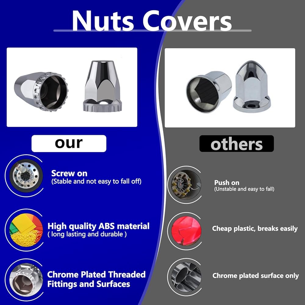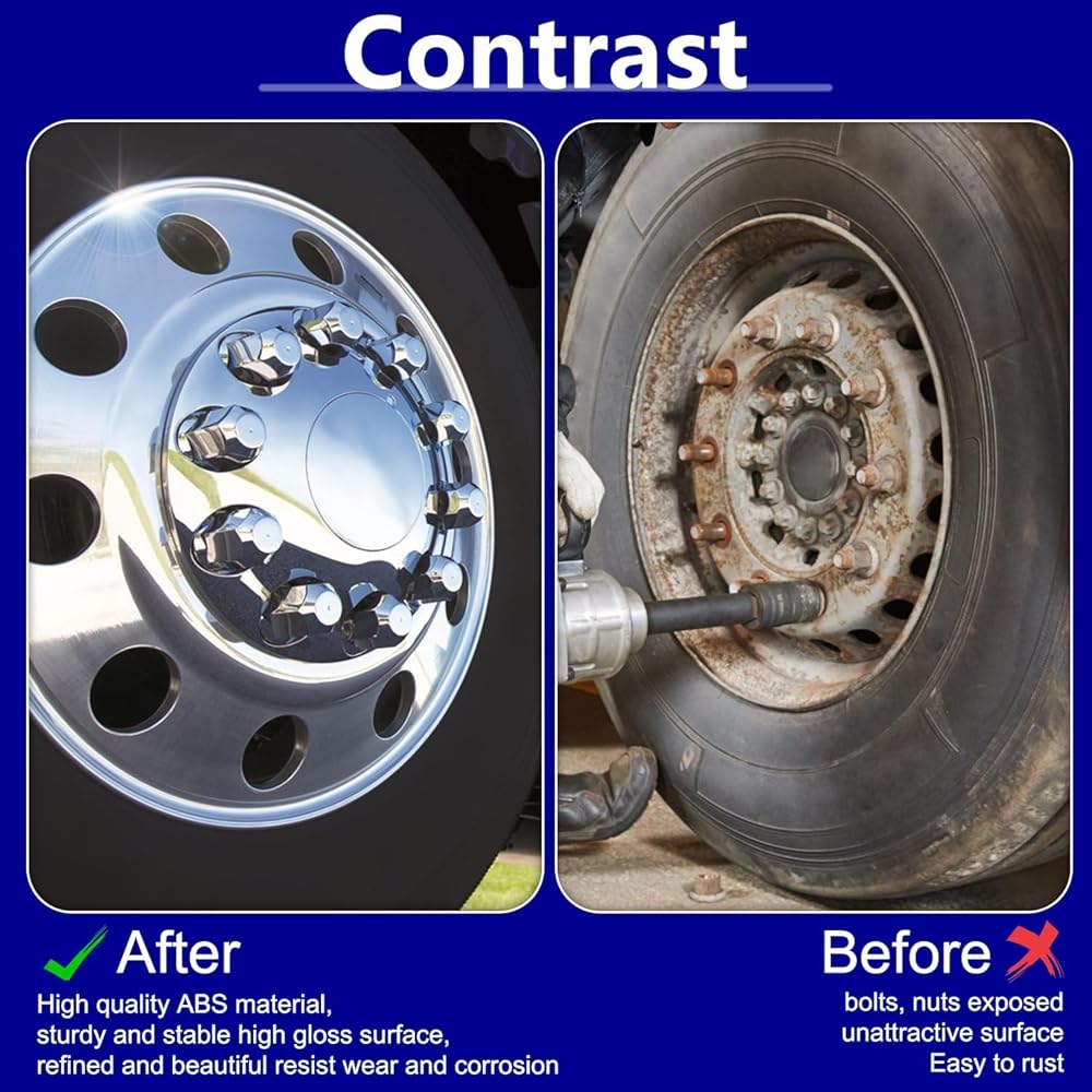 🚛【جميلة ومقاومة للصدأ】أغطية صواميل العروة مصنوعة من مادة أكريلونتريل بوتادين ستايرين عالية الجودة والتي لها سطح يشبه المرآة بعد طلاء الكروم ومصقول. إنها مقاومة للتآكل والتآكل. لن تصدأ مثل الأغطية المعدنية. اجعل سيارتك أكثر المبهر وبراقة.