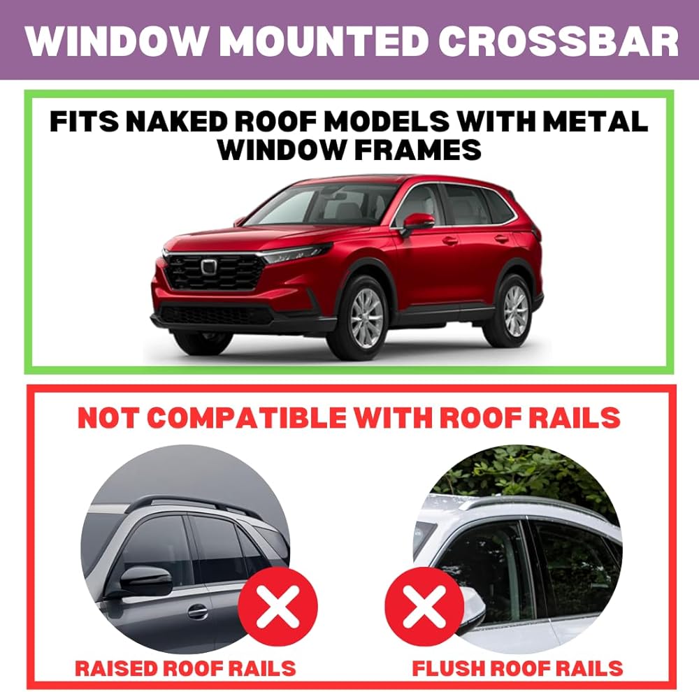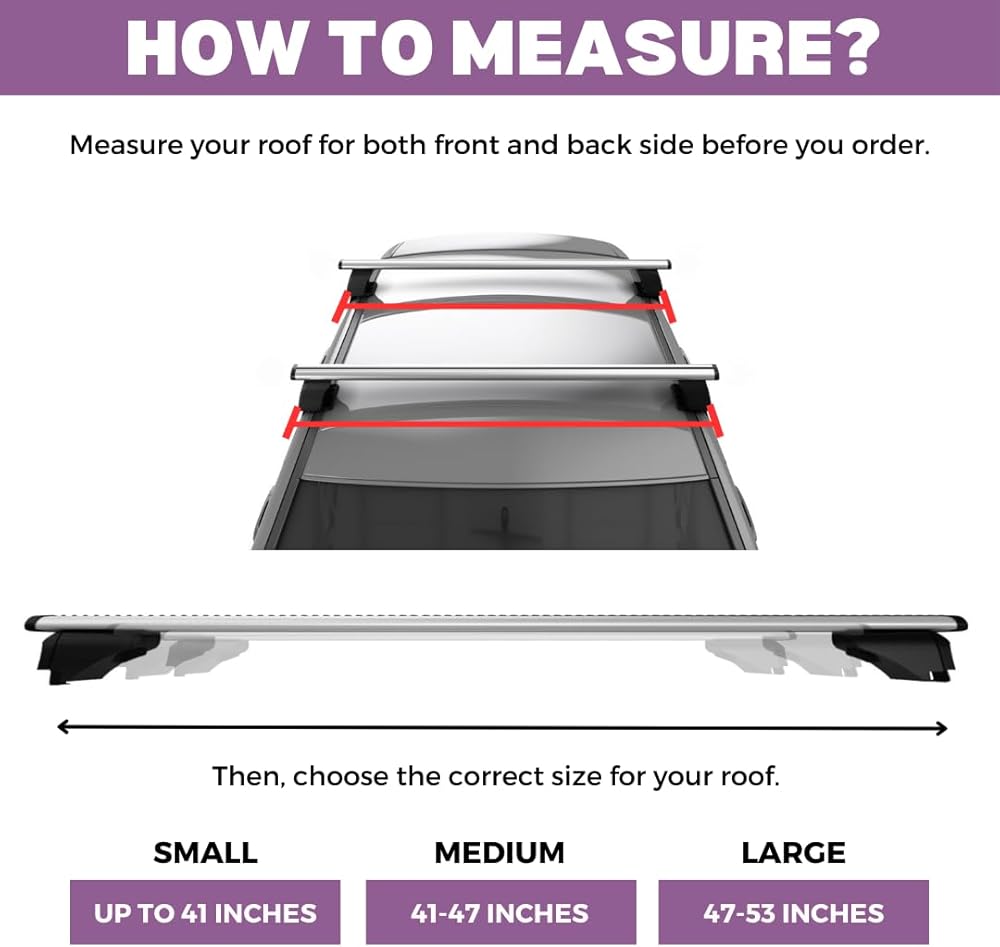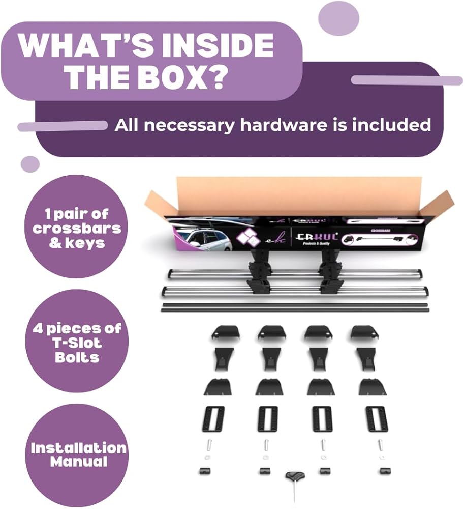 • مصممة لسهولة الإعداد، يتم ربط القضبان المتقاطعة بإطارات النوافذ الجانبية، مما يلغي الحاجة إلى قضبان سقف إضافية وتبسيط نقل الأمتعة وأكثر من ذلك. تجميع سهل مع فيديو تركيب ثلاثي الأبعاد ودليل سهل الاستخدام. لمزيد من الإرشادات، راجع دليل التثبيت في قسم "أدلة المنتج والمستندات".