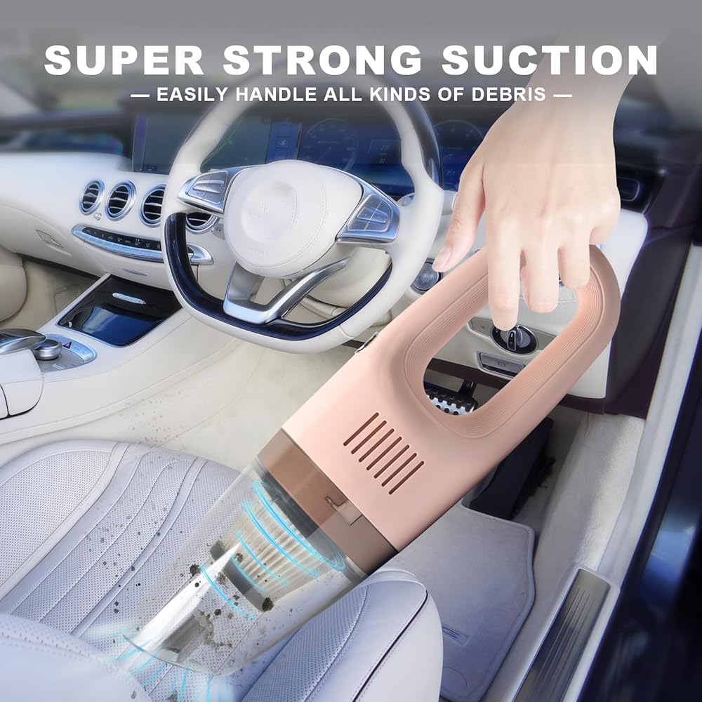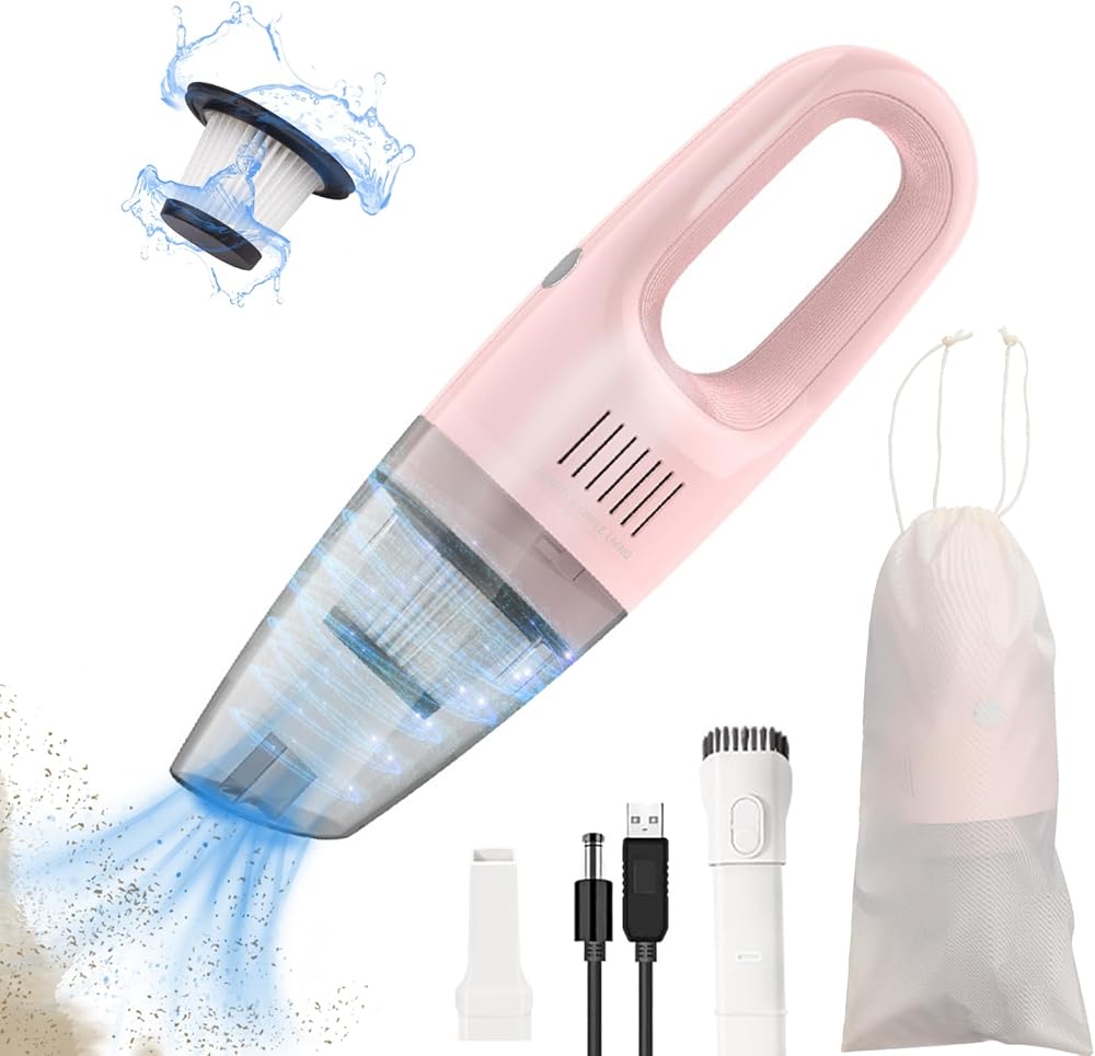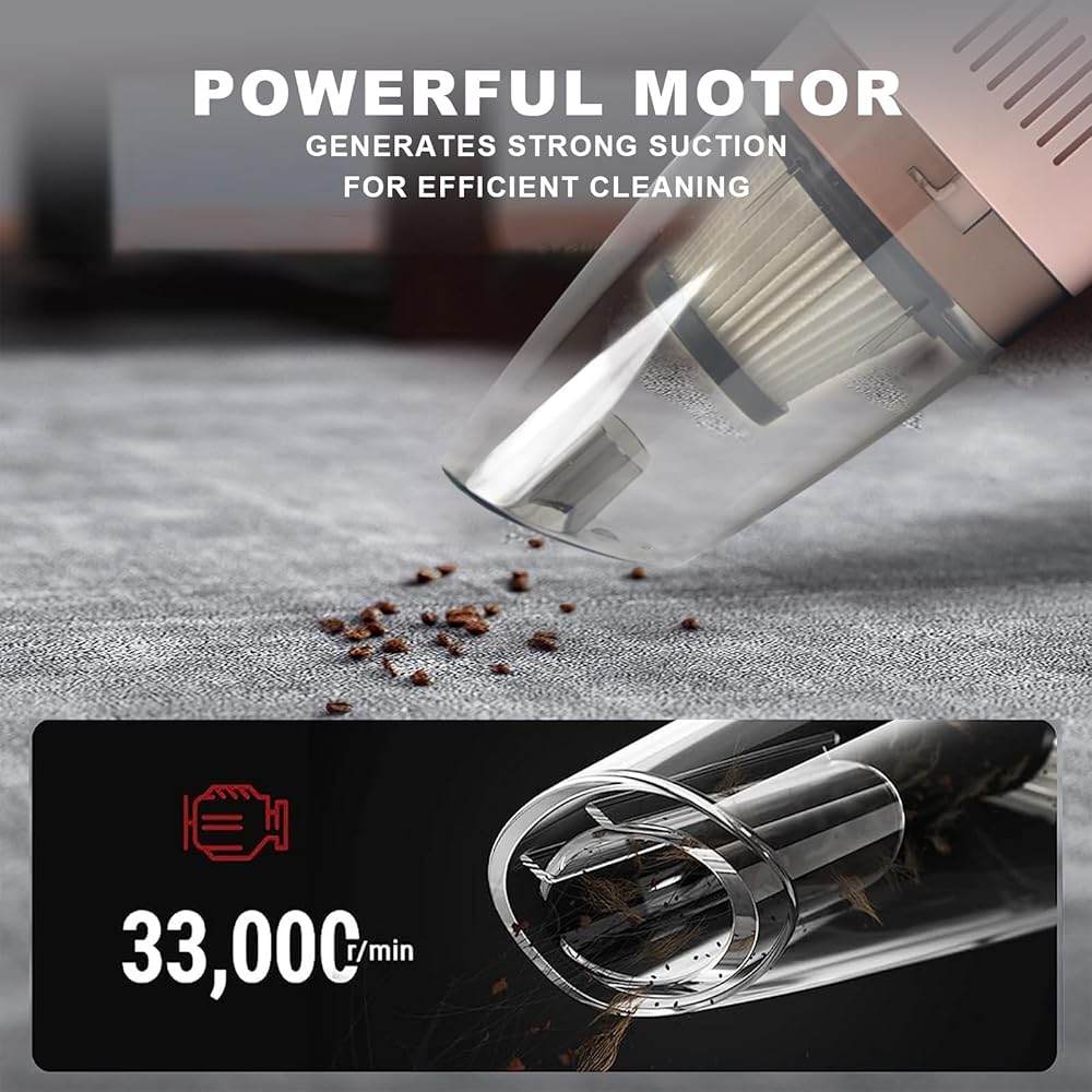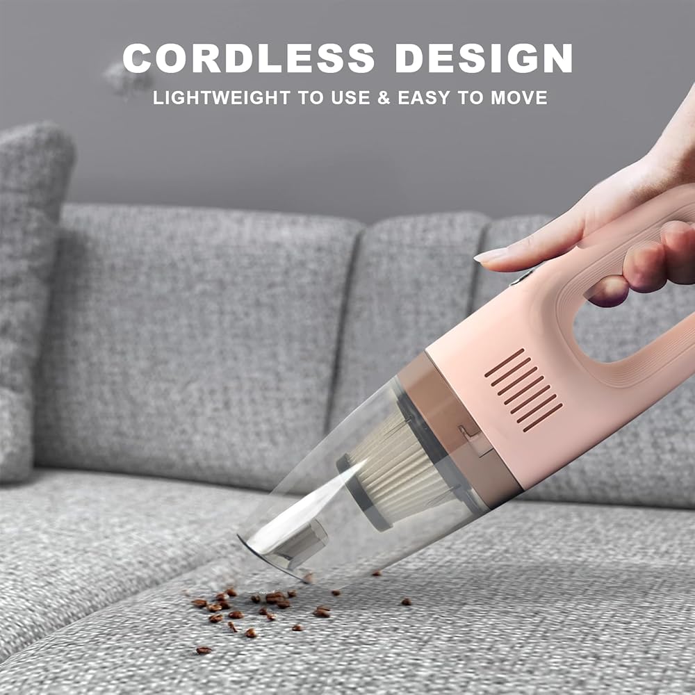 【استمتع بالحرية اللاسلكية】تم تجهيز هذه المكنسة الكهربائية اللاسلكية بشفط قوي للغاية ومحرك قوي حتى تتمكن من التخلص من الأوساخ والغبار والجسيمات الأخرى التي قد تكون كامنة على أي سطح، وسهلة التنظيف حتى في الأماكن التي يصعب الوصول إليها، لأن خطوط الحدود لم تعد تقيدك. حل المشاكل المستعصية. يوم رملي على الشاطئ؟ أين يوجد شعر الكلب؟ تم تصميم المكنسة الكهربائية المحمولة ذات اللون الوردي لحل هذه المشكلة.