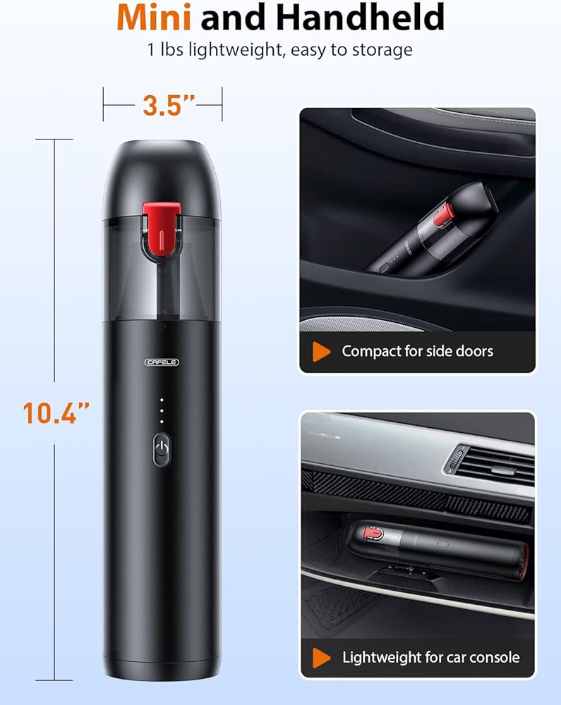 【خفيفة الوزن وقابلة للحمل】: مكنسة السيارة المحمولة الخاصة بنا هي قوة صغيرة وخفيفة الوزن مثالية للتنظيف أثناء التنقل. يزن 1 رطل فقط، وهو سهل الحمل ولن يجهد ذراعيك أو ظهرك. حافظ على نظافة سيارتك أو منزلك دون أي متاعب مع مكنسة السيارة خفيفة الوزن والمحمولة.