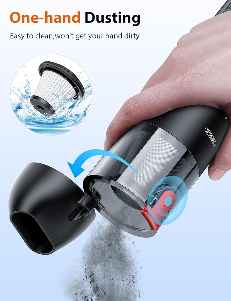 【ترشيح HEPA المتقدم】: مجهزة بفلتر HEPA الذي يلتقط 99.97% من الغبار، تضمن مكنسة السيارة الصغيرة لدينا أن سيارتك أو منزلك خالي من الغبار والجسيمات الأخرى. تساعد تقنية الترشيح HEPA المتقدمة على إزالة الجزيئات الصغيرة، مما يوفر تنظيفًا شاملاً لسيارتك أو منزلك.