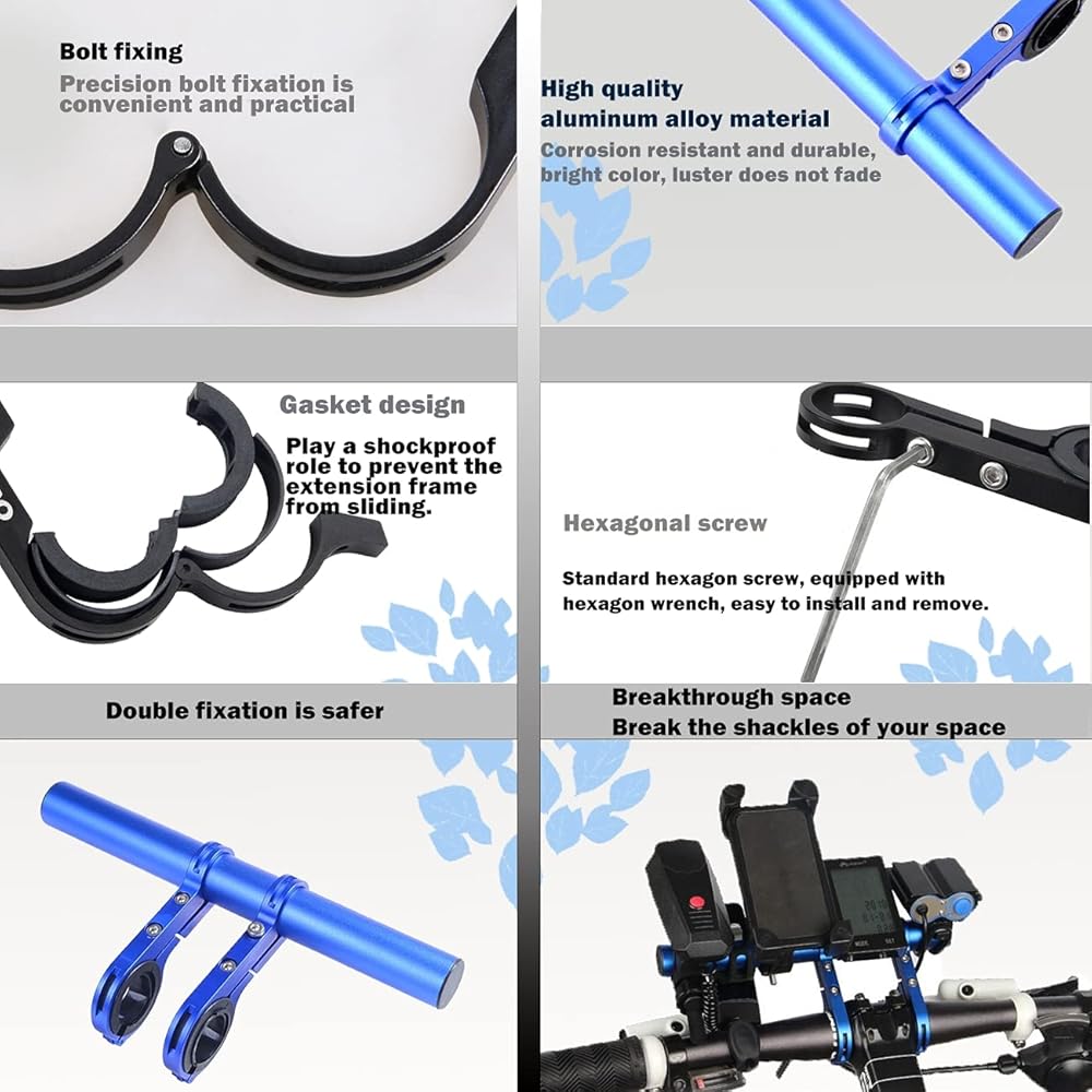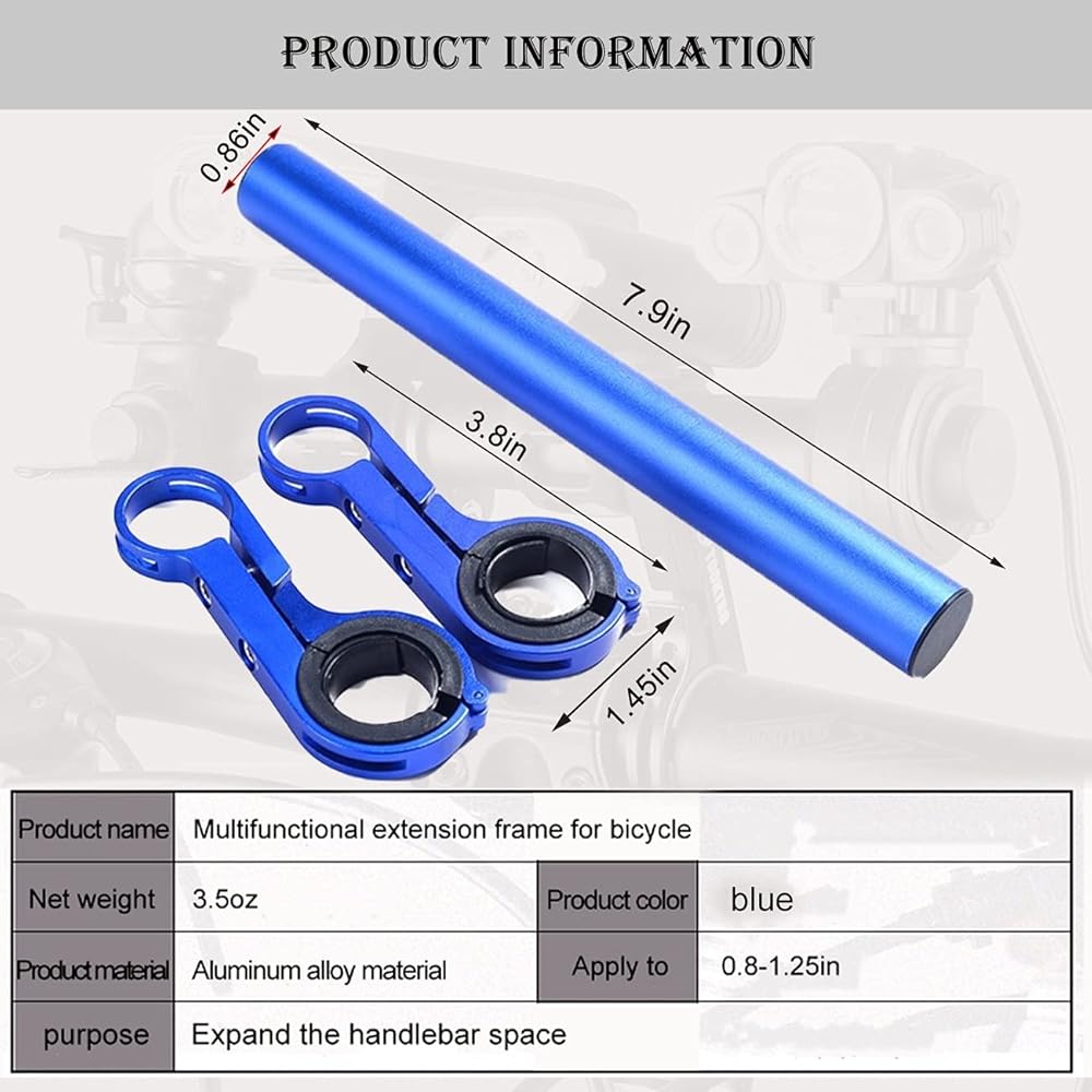 - ▶متعدد الوظائف: يبلغ حجم موسع مقود الدراجة 7.9 × 0.86 بوصة، ويمكن استخدامه لوضع طاولات الرموز وحوامل الهاتف المحمول وما إلى ذلك، لتوفير مساحة إضافية.