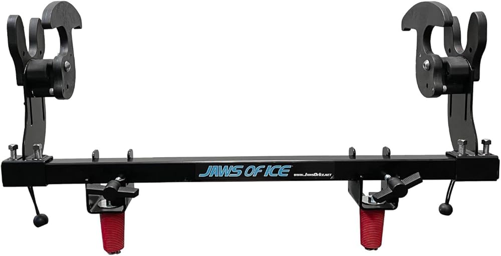 في العلبة: 1 حاملة Ice Auger Carrier من العلامة التجارية Jaws of Ice، 1 مجموعة تركيب قياسية.