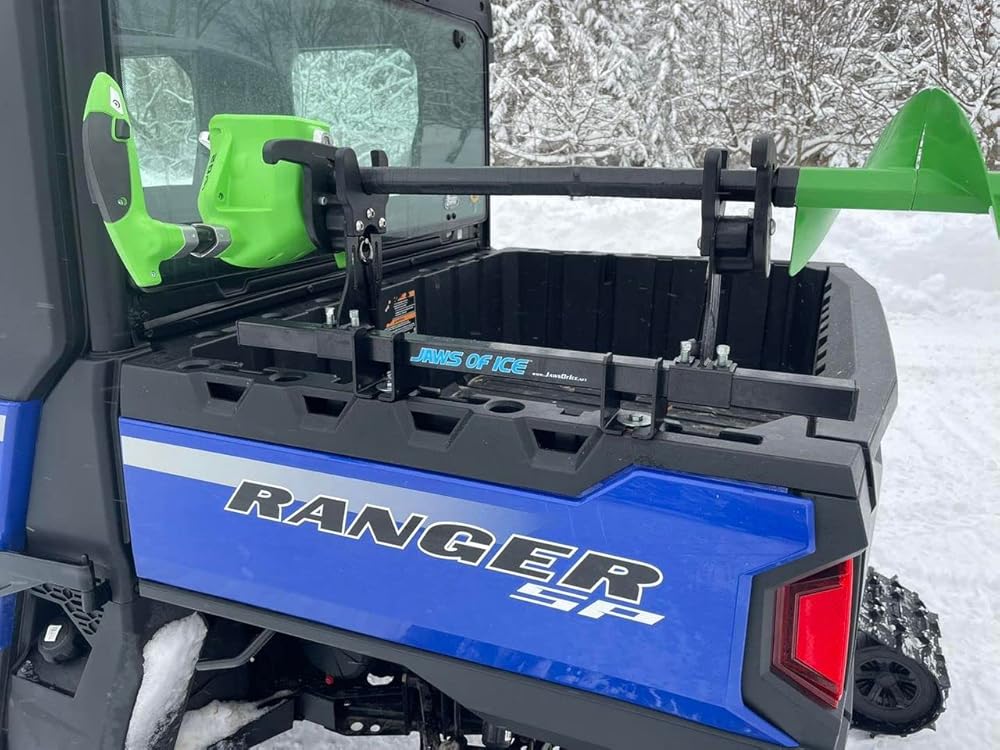 حامل أوجيه الجليد رقم 1 لصيد الأسماك على الجليد - قم بتحميل وتثبيت المثقاب الخاص بك في ثوانٍ، دون إزالة قفازاتك. ما عليك سوى وضع مثقب الثلج في الفكين، ثم رفع الفك العلوي لتأمينه. لتفريغ الحمولة، اسحب دبوسين سريعي التحرير من كل جانب، ثم حرر المثقاب.