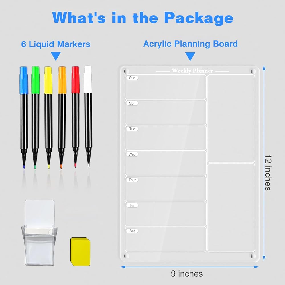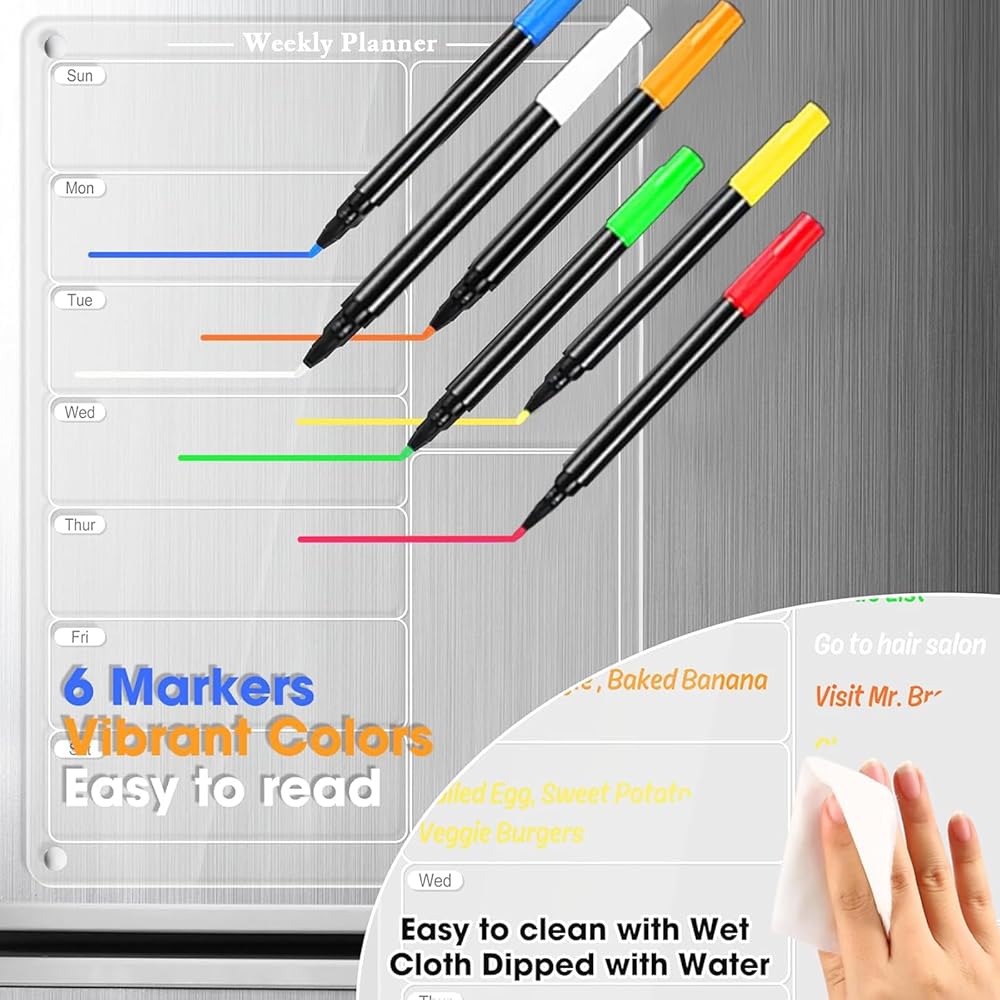 ملحقات وفيرة: تشتمل المجموعة الكاملة على لوحة قائمة مطبخ مقاس 9 × 12 بوصة، و6 ألوان من أقلام التحديد، ومنديل تنظيف، وحامل قلم مغناطيسي أبيض للثلاجة.