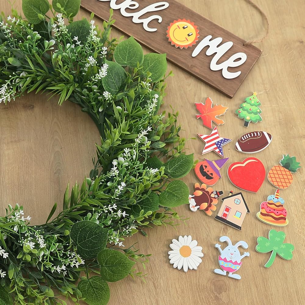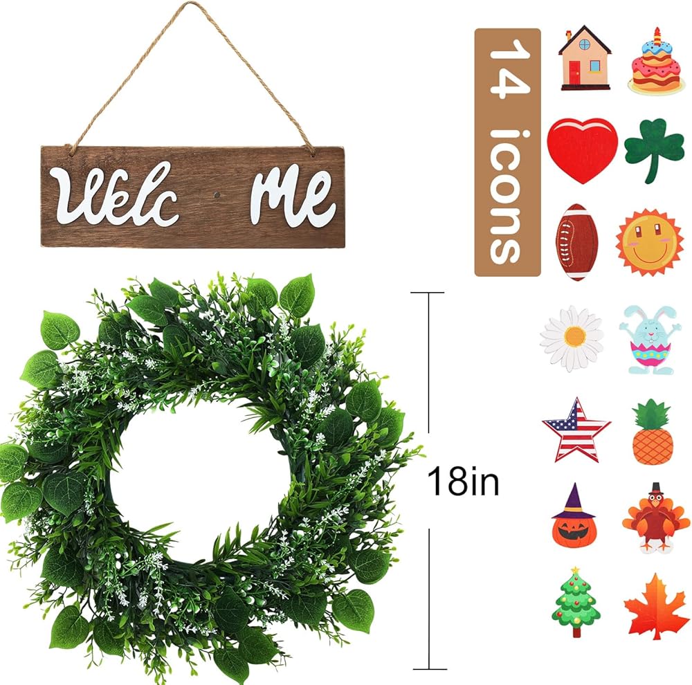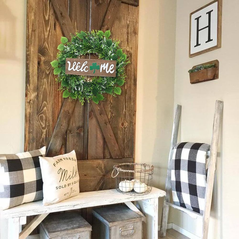 إكليل قابل للتبديل - يُعد تعليق ديكورات الباب الأمامي مثاليًا للترحيب بالعطلة الجديدة أو حتى اليوم القادم، ومناسب لعيد الحب، وعيد الفصح، وعيد القديس باتريك، وعيد الاستقلال، والهالوين وعيد الميلاد، وهو مثالي للديكور الداخلي والخارجي لبيت المزرعة.