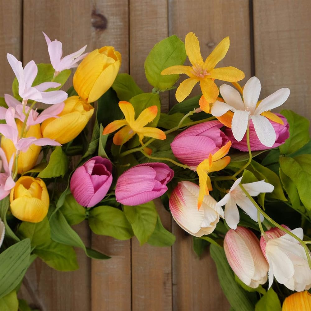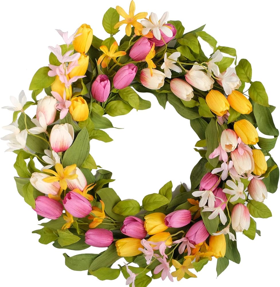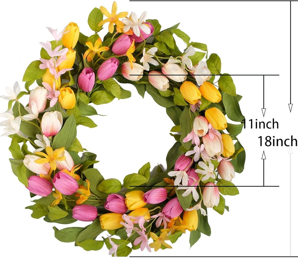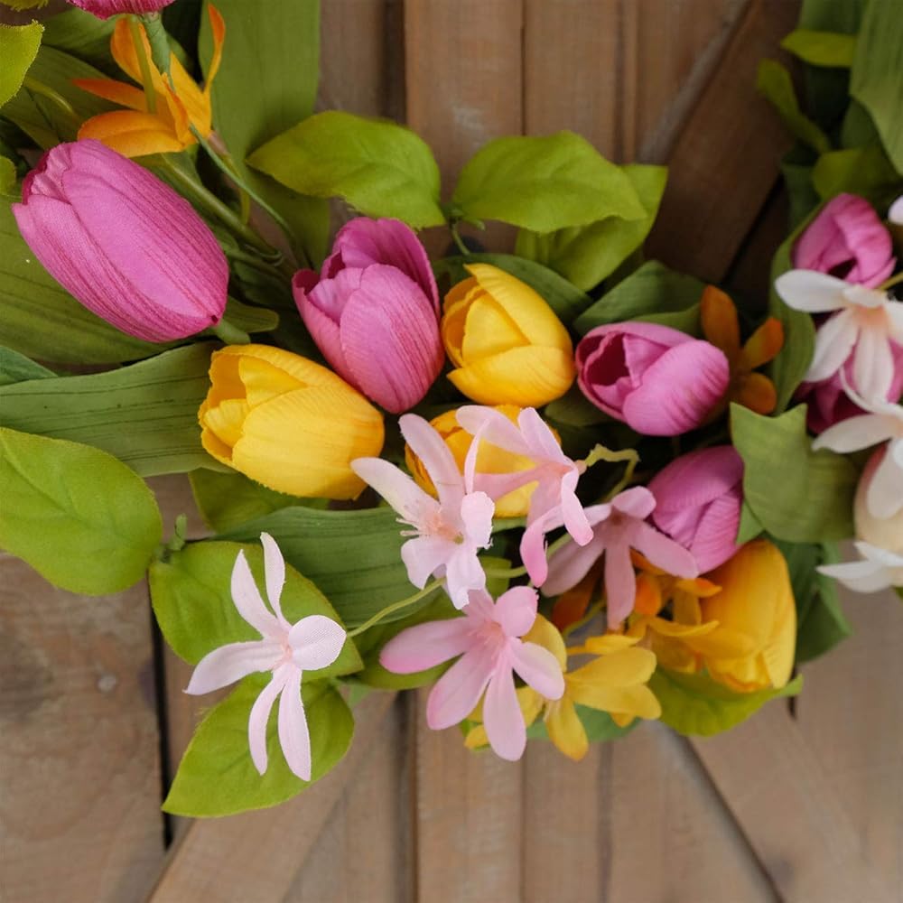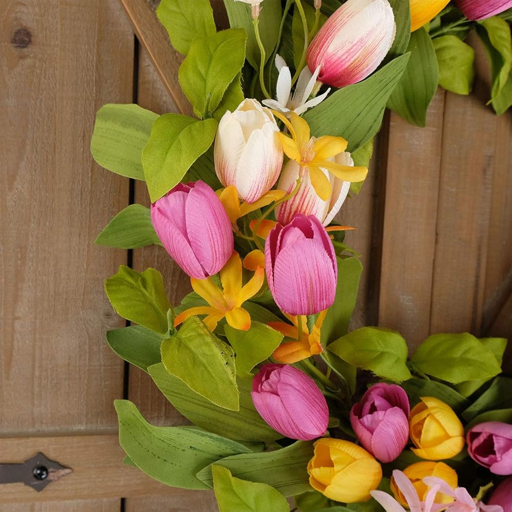 Bibelot 18 بوصة إكليل عيد الفصح إكليل زهرة التوليب الاصطناعي من الحرير وهمية زهرة الربيع إكليل باب عيد الحب إكليل عيد الأم طوال العام أو في الهواء الطلق ديكور داخلي للمنزل والحفلات...