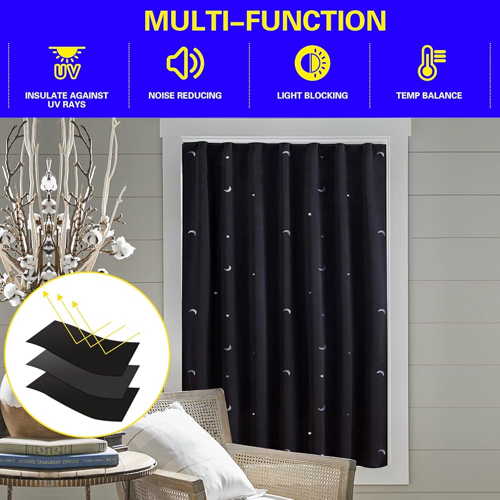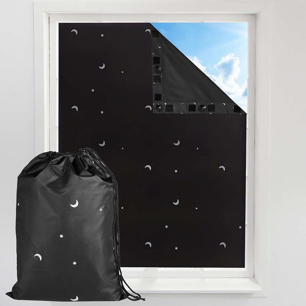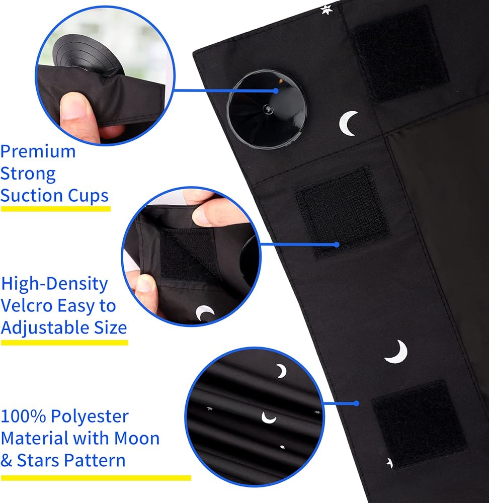 ستارة تعتيم نوافذ السفر المحمولة للأطفال من Goabroa، ستائر تعتيم مؤقتة قابلة للتعديل مقاس 78 بوصة × 50 بوصة مع أكواب شفط لغرفة الأطفال أو غرفة النوم - نمط القمر والنجوم