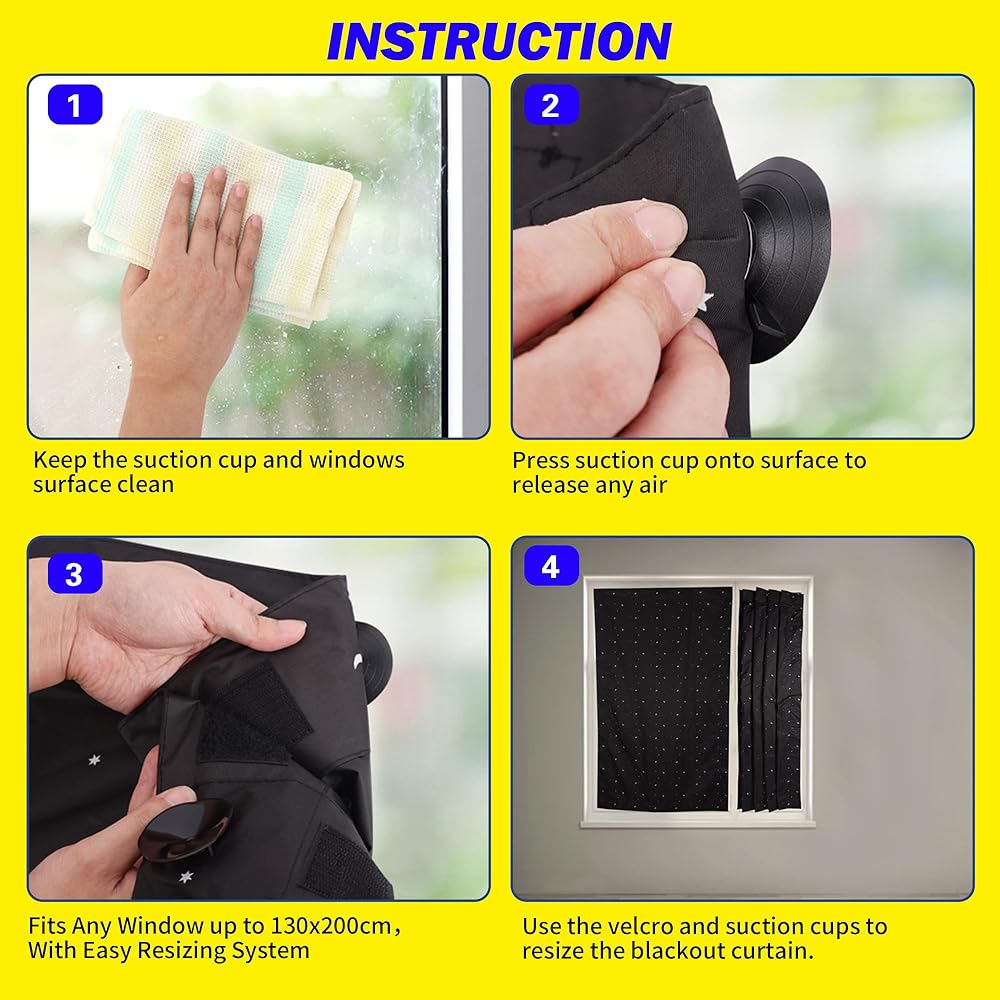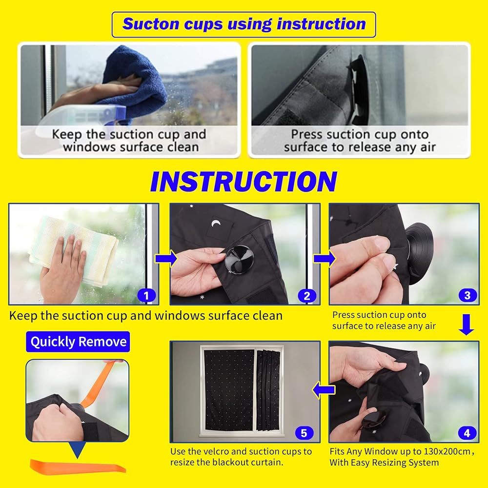 ❂سهلة التركيب والإزالة - تستخدم ستارة التعتيم المحمولة أكواب شفط ذات قوة صناعية لتثبيتها بسهولة على النوافذ بأحجام مختلفة بدون أدوات في دقائق. نصيحة احترافية: بلل أكواب الشفط قبل وضعها وستبقى ثابتة إلى الأبد. سوف تفشل أكواب الشفط على الأسطح المتربة أو المتسخة. يُستخدم على الزجاج المسطح والسلس والخالي من الشقوق فقط.